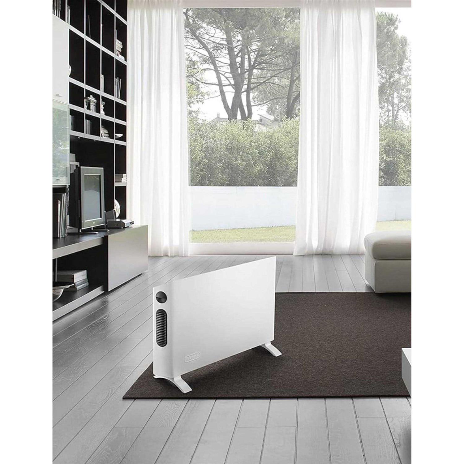 The sleek, stylish DeLonghi Slim Style Convector Panel Heater is perfect for any application and any decor. Equipped with instant heat and a unique fan system, this heater quickly warms up your coldest rooms while its slim design and convenient wall mountable option let you place it virtually anywhere. Customize your heating needs with the adjustable thermostat and three-heat setting. Enjoy peace of mind knowing that this heater has a safety thermal cut-off so it doesn’t over heat, an internal tip-over switch in case the unit becomes unstable and power/caution indicator lights.