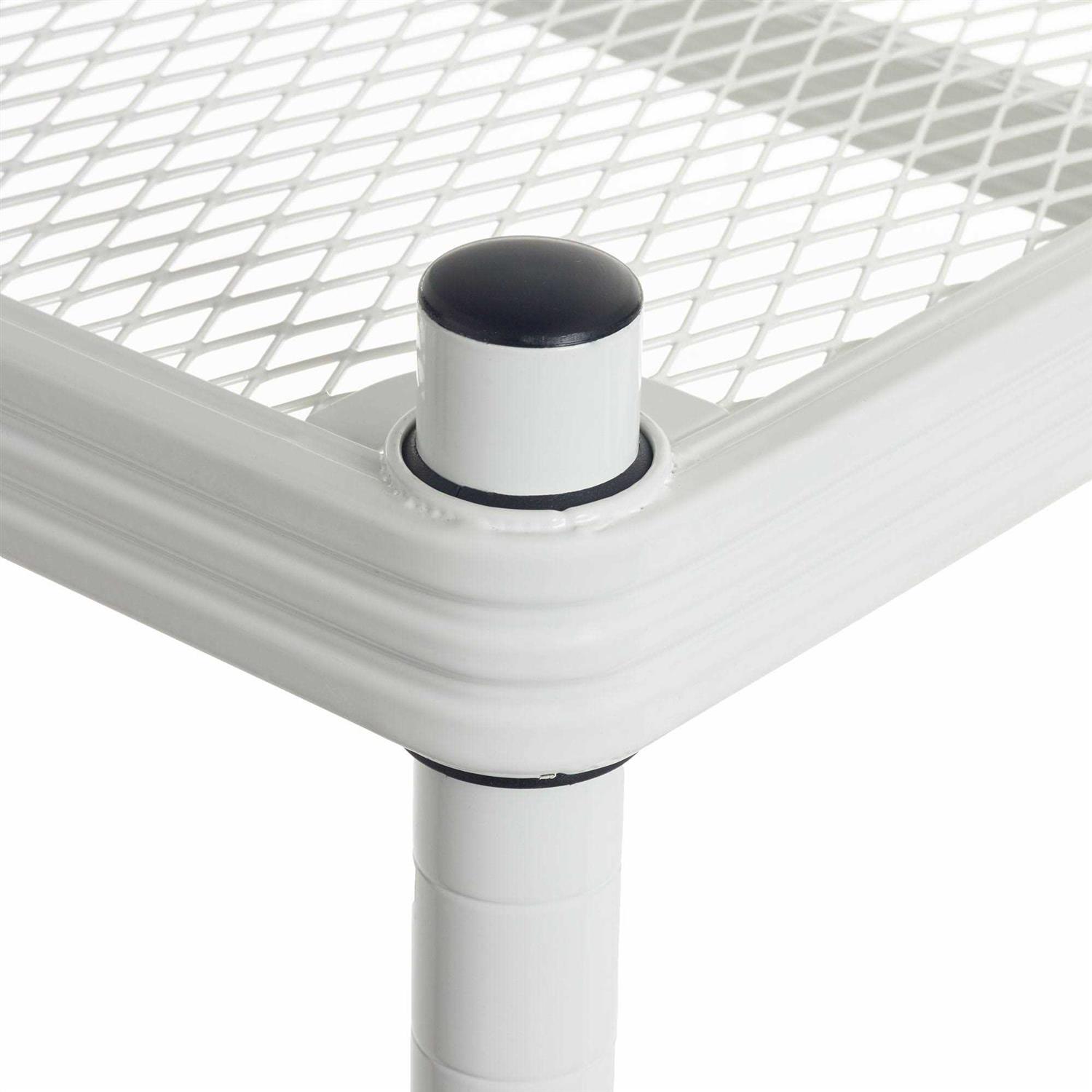 Traditional wire shelves can cause a headache as items can fall through the wide gaps on the shelves. Our brilliantly engineered mesh shelving units use a larger gauge of expanded metal mesh for style, strength and functionality. Each shelf has a weight limit of 440 pounds to safely hold everything from small knick knacks to large, heavy bins. Each MeshWorks stacking shelf includes 2 adjustable shelves and hardware for stacking multiple units as high as you need.