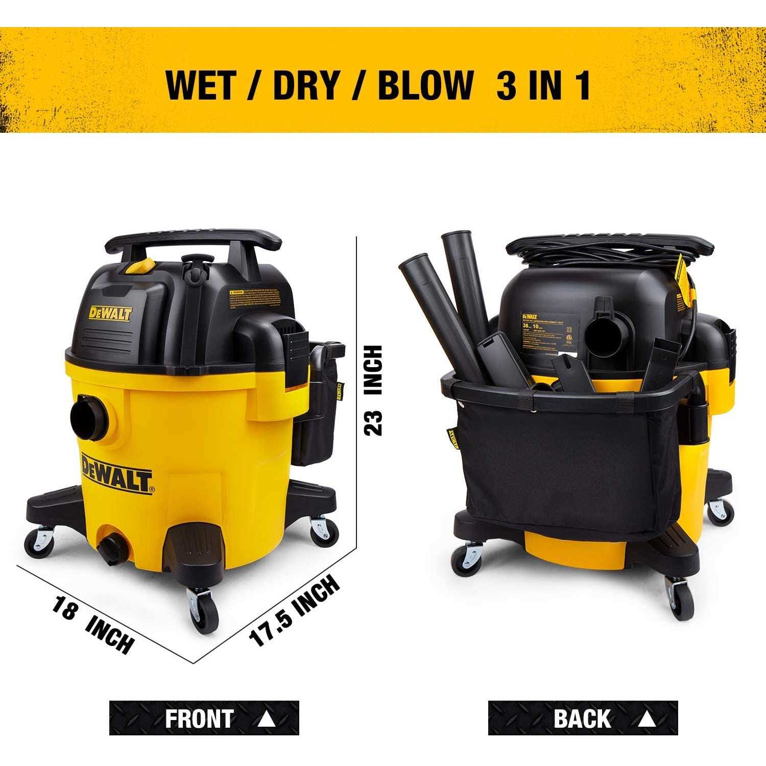 Sturdy 10 gallon dual-stage wet/dry Vac has quieter operation for clean-up applications. Tool Length-19.9 inch.290.0 watts Powerful 5.5 peak horsepower motor provides just the amount of suction needed to most any cleanup job Ultra durable rubberized casters allow smooth swiveling for ease of movement Extra long, 20′ Power cord with cord wrap helps reach almost any cleanup need Built-in blower port powerful enough to blow Sawdust and debris from most any workshop Built-in accessory storage bag conveniently attached to the backside of the vac to keep all accessories neatly organized Large built-in tank drain makes it easy to remove liquids picked up The 10 gallon wet/dry vac features a quiet 2 stage motor, for up to 50% quieter operation and 2 longer life. It arrives with a dust cartridge filter for small, dry debris and wet materials, strong handle for easy carrying, large on/off switch with water-resistant design for safe and Quick access, convenient, built-in 20 power cord and accessory bag to get all your accessories/tools organized. Swiveling casters provide ease of movement in any direction while a built-in tank drain makes draining easy. Tank capacity refers to actual tank volume and does not reflect capacity available during operation. Peak Horsepower” (PHP) is a term used in the wet/dry vacuum industry for consumer comparison purposes. It does not denote the operational horsepower of a wet/dry vacuum but rather the horsepower output of a motor, including the motors inertial contribution, achieved in laboratory testing. In actual use, motors do not operate at the peak horsepower shown.