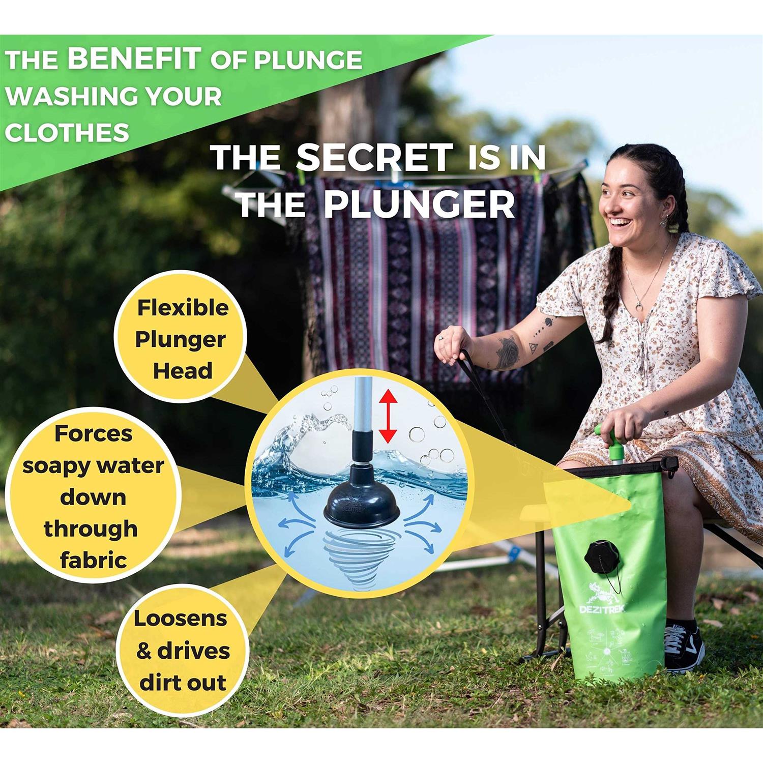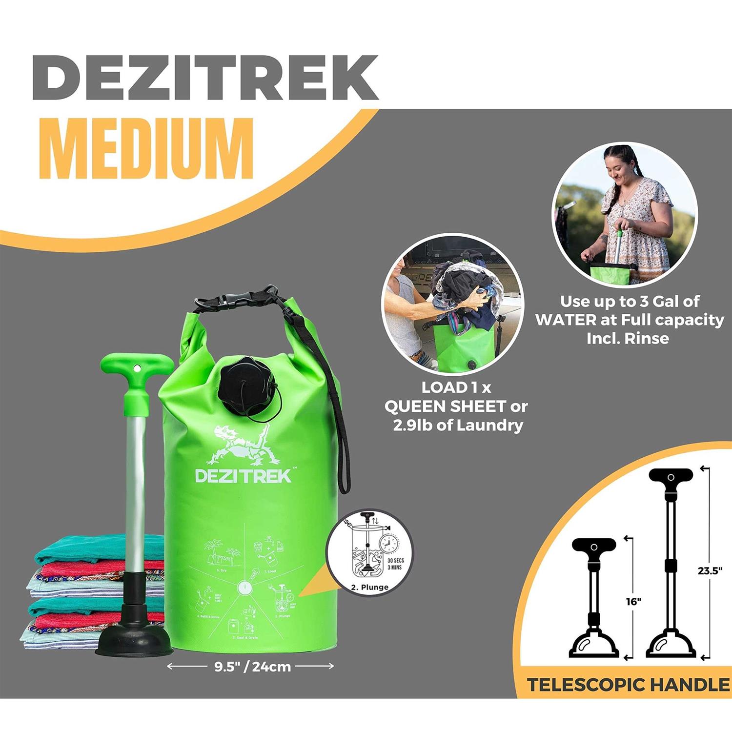 Dezitrek All in One Hand Wash Bag and Plunger Set Off Grid Washing Machine Non Electric for Camping Travel