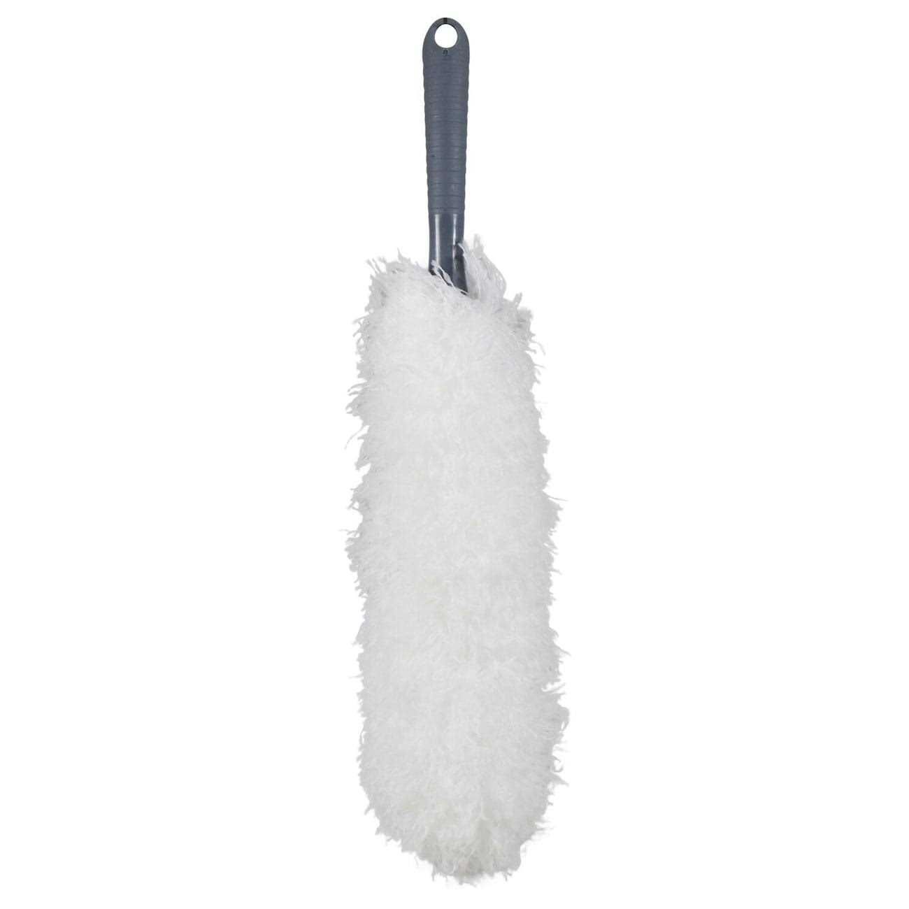 Dust those hard-to-reach places with ease with this Flexible Duster. The dusters material allows it to trap dust instead of kicking it up like traditional feather dusters. The handle makes it great for hanging up in storage and for reach. Great for ceiling fans, shelves, picture frames, and other hard surfaces.