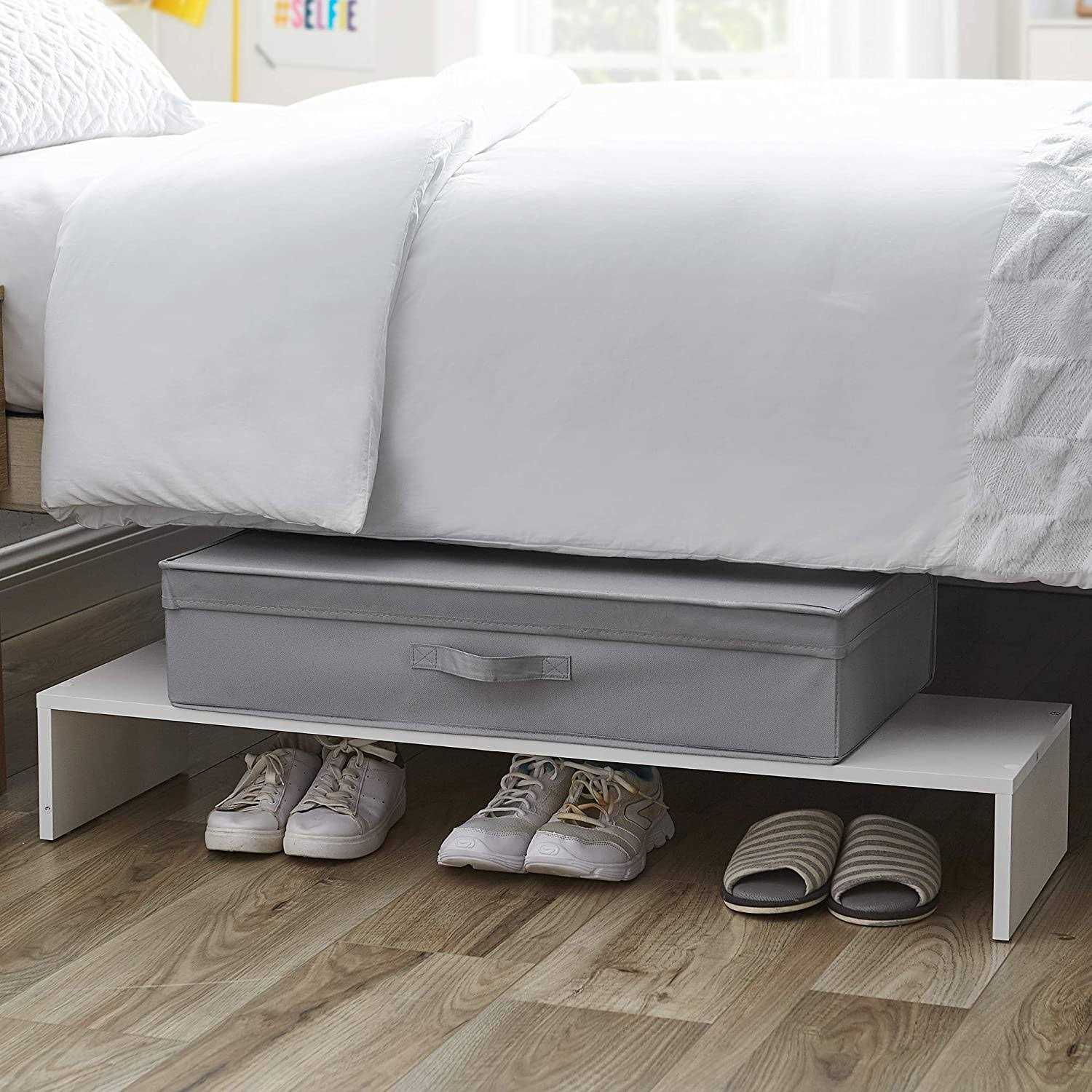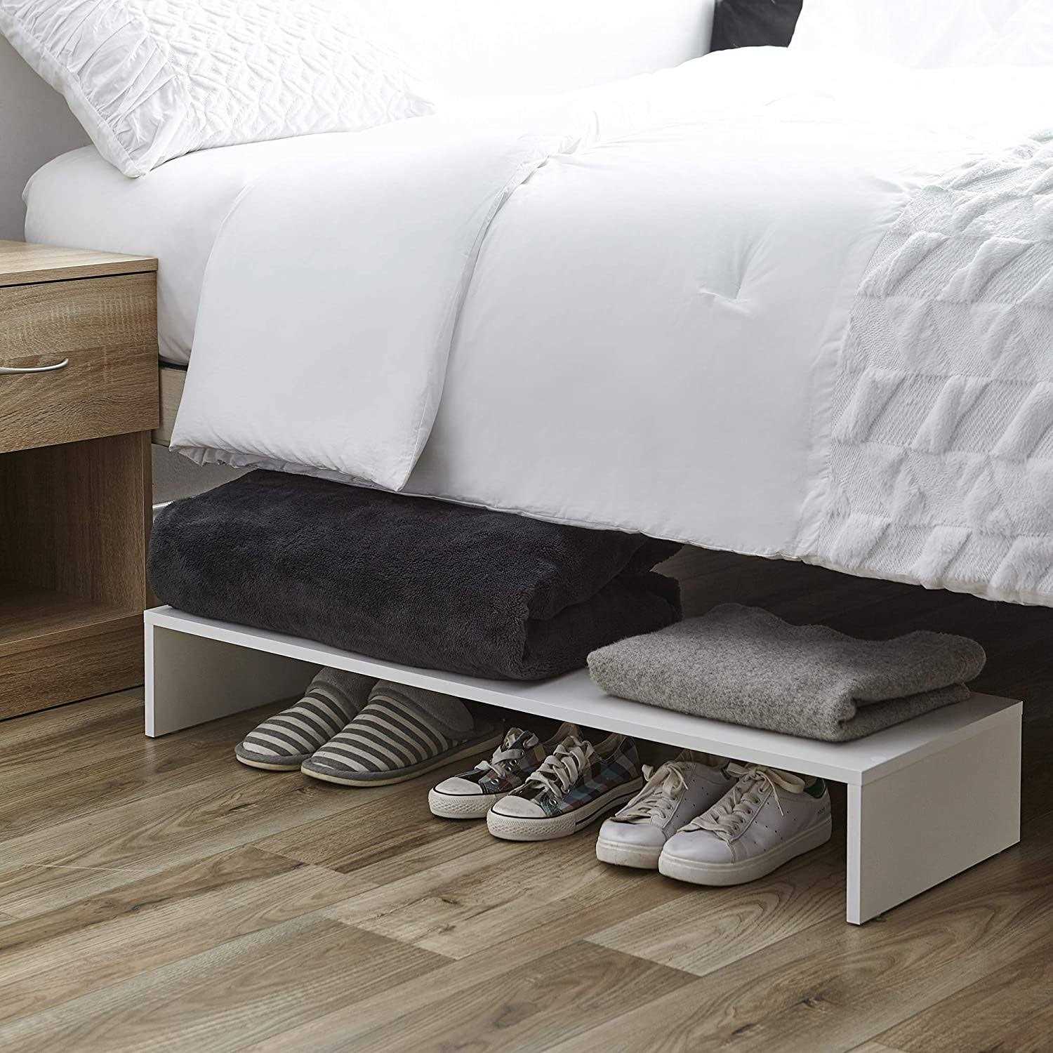 Whether it’s in your home’s entryway, the closet, bedroom, college dorm, or under your bed there are never enough spots to store your shoes. With the Yak About It, Bi-Level Shoe Storage Organizer this simple shelf is trying to help add more organized space! The bottom level is ideal for storing shoes, while taller boots can be stacked on top of the shelf. Another option for this versatile organizer is to add fold-up cubes (not included) to the top shelf for even more organization in your home!