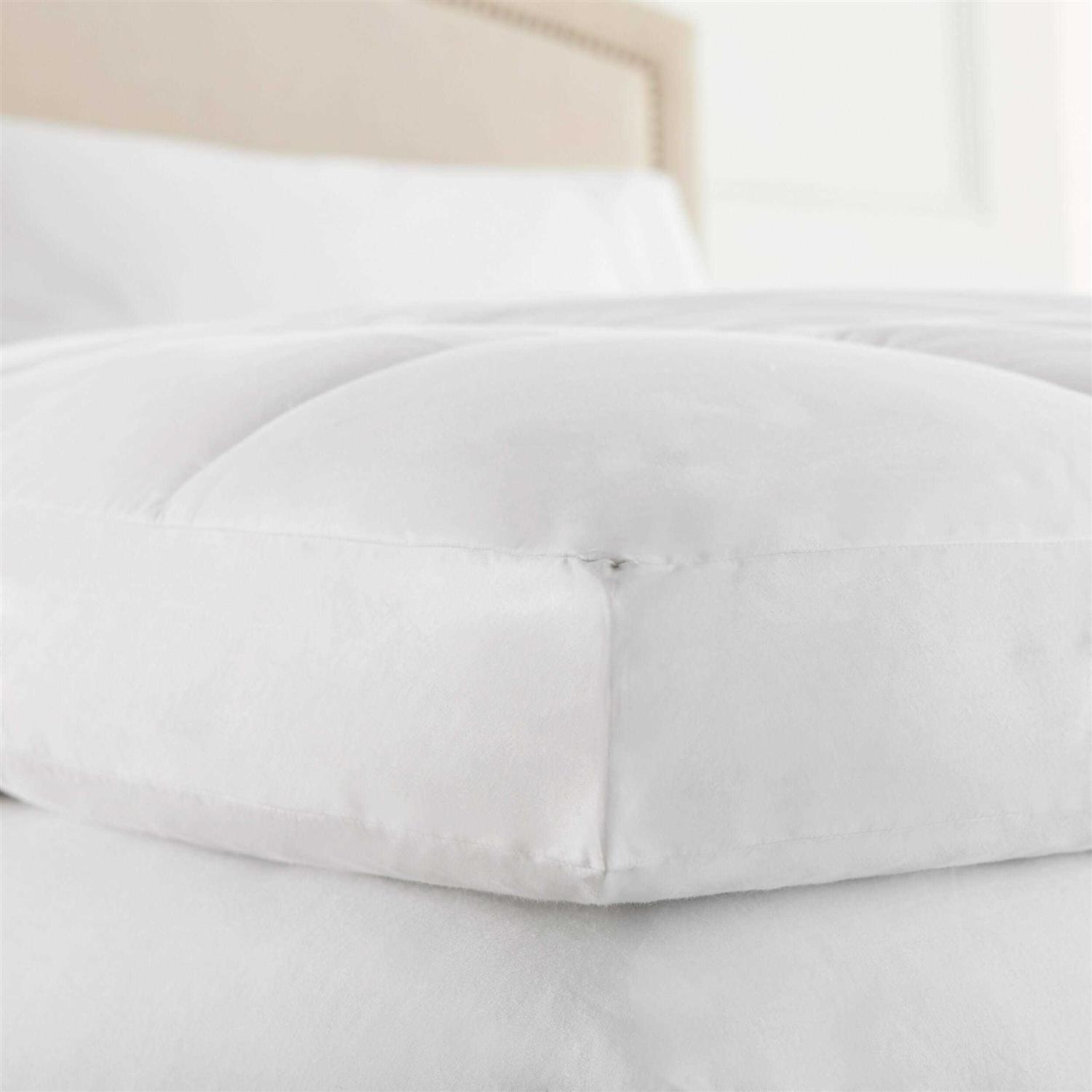 Look forward to falling in bed with this softening and rejuvenating ultra plush cloud pillow top feather bed. Baffle box construction allows for generous plush zones to sink into every night. Feather beds are best experienced with daily fluffing with vigorous shaking. Please take the time to read all about the item and its suggested daily fluffing. The measurement of the feather bed is derived from the cut of the fabric, so upon placing on your bed you will see a couple inches gap between the mattress and the feather bed. This is due to the item simply being puffed up and the vertical pull of the fabric from the sides. A feather bed is a piece of bedding that you can’t simply lay on and not expect to fluff everyday. Upon laying on the feather bed the weight of your body will leave an imprint and this is by design – it is cocooning you. Upon waking you will want to pre-fluff it for your next sleep experience – otherwise it can feel lumpy.