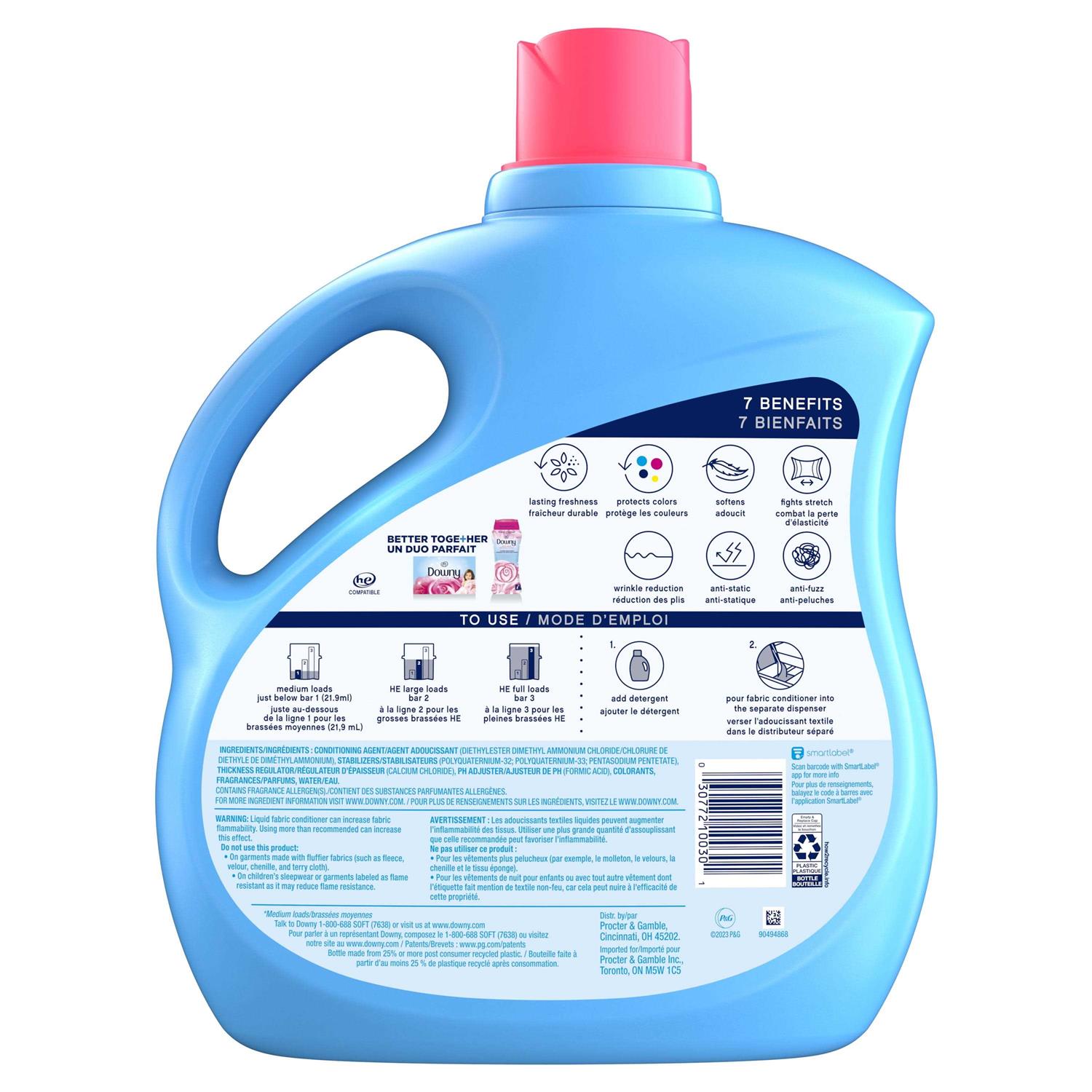 Downy April Fresh Liquid Fabric Conditioner softens, freshens, and protects your clothes from stretching, fading, and fuzz—leaving them with a long-lasting Febreze-fresh floral scent you’ll want to keep on sniffing. This conditioning fabric softener fights static and reduces more wrinkles than using detergent alone in the wash. Easy to use and compatible with top- and front-loading machines, Downy is the must-have addition to laundry day—so your clothes can always look and feel their best.