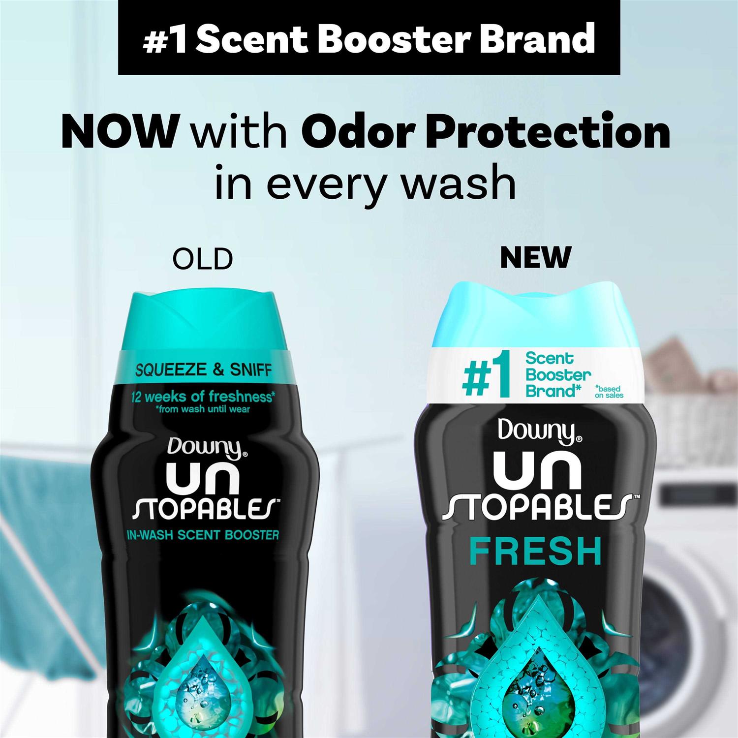 Downy Unstopables FRESH In-Wash Scent Booster beads are small laundry scent beads that work inside your washing machine, giving your laundry up to 12 weeks of freshness. * Before adding clothes, simply shake as many Downy Unstopables scent beads as desired into the cap, and then toss into the washer drum. Use scent booster beads along with your laundry detergent and fabric softener for long-lasting freshness. Add to each load of laundry for fresh, delightful-smelling clothes, sheets, and towels. It’s a fresh too feisty to quit.