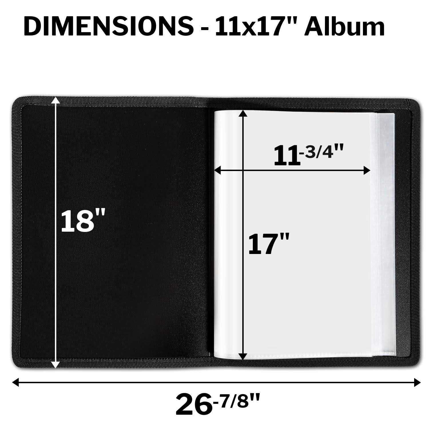 The 11×17 Large Art Portfolio by DunwellThe Dunwell 11×17 Art Portfolio Book has so many uses! Use to store and display modelling photos, comic book artwork, watercolors, art pieces, drawings and sketches, souvenir posters, illustrations, and newspaper pages, graphic design, fashion design, and more. Its also a great way to organize art school, and extra large homeschool projects. Its perfect for artists, art students, teachers and kids to organize distance learning and homeschool projects, and for art students to display their photography, graphic designs, or other presentations.The 11×17 artwork folder looks great! The cover is constructed of sturdy yet flexible poly with an attractive textured look and feel, finished with an elegant woven black trim. Inside are clear plastic binder sleeves, made of standard weight clear poly. The storage pockets are archival quality, non-glare and non-cling. The outside dimensions of this 11×17 Album measures 13.4 x 17.9?. Each display pocket is 11.2 x 17.2 inch, to comfortably fit large pieces of artwork. The 24 bound (non-refillable) top-loading plastic 11×17 sheet protectors display 48 viewable pages.Preserve and proudly display your artwork and photos, with an art binder portfolio book by Dunwell, the Trusted Name in Organization Solutions!