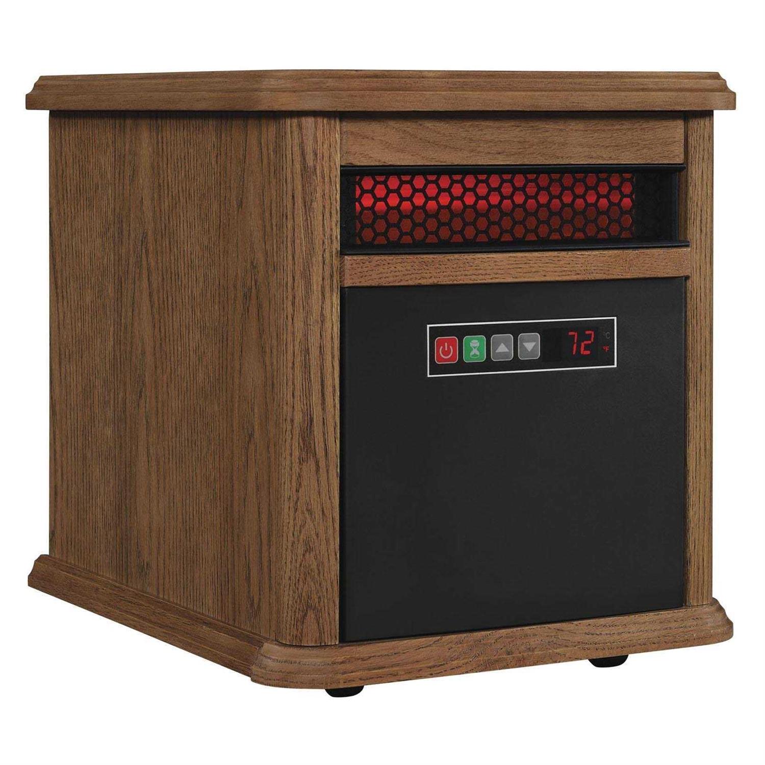 Are you always cold? Increase the heat in your living space without emptying your wallet with the Portable Electric Infrared Quartz Heater by Duraflame. Classic design elements combine with modern technology in this electric, infrared quartz heater that provides supplemental zone heating for rooms up to 1,000 square feet with 5,200 BTUs. The infrared quartz heat helps to maintain the natural humidity in the air, resulting in comfortable heat without drying out the room’s air. The casters make this portable heater easy to move from room to room, so you’ll have warmth wherever you need it. This durable heater is built with solid hardwoods and real wood veneers. The unit comes fully assembled and is ready to heat right out of the box. Equipped with patent pending Safer Plug fire prevention technology that monitors the temperature of the plug, this heater lets you feel confident that your family, home and product are safe. An adjustable digital thermostat, electronic timer and remote control give you more control over your environment. Stay warm and cozy this cold season with the Portable Electric Infrared Quartz Heater by Duraflame.