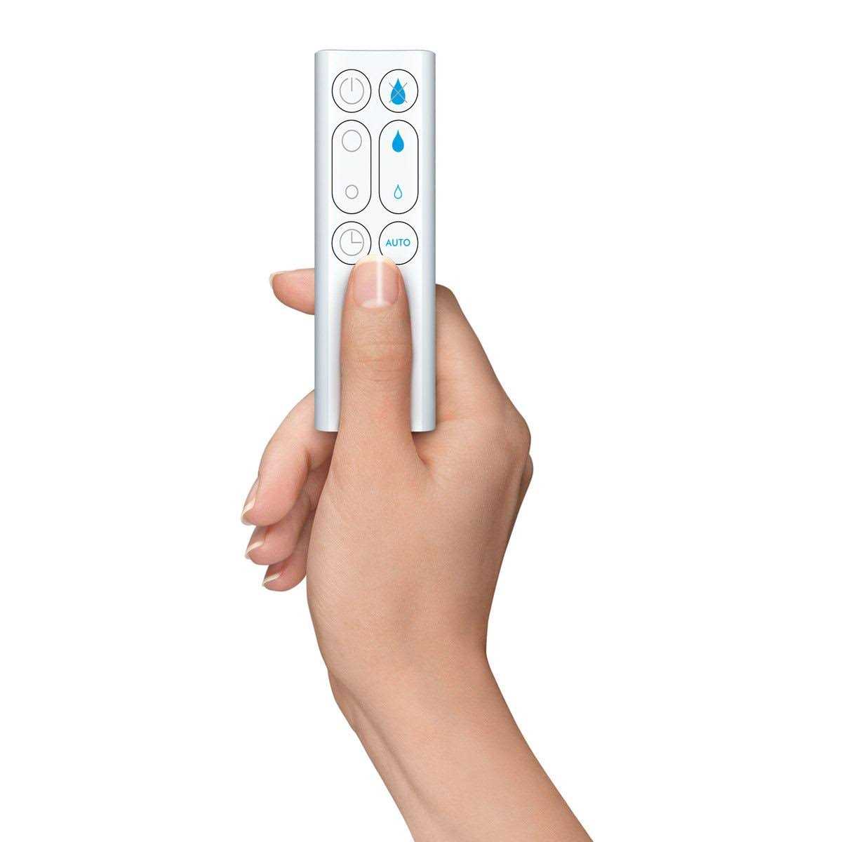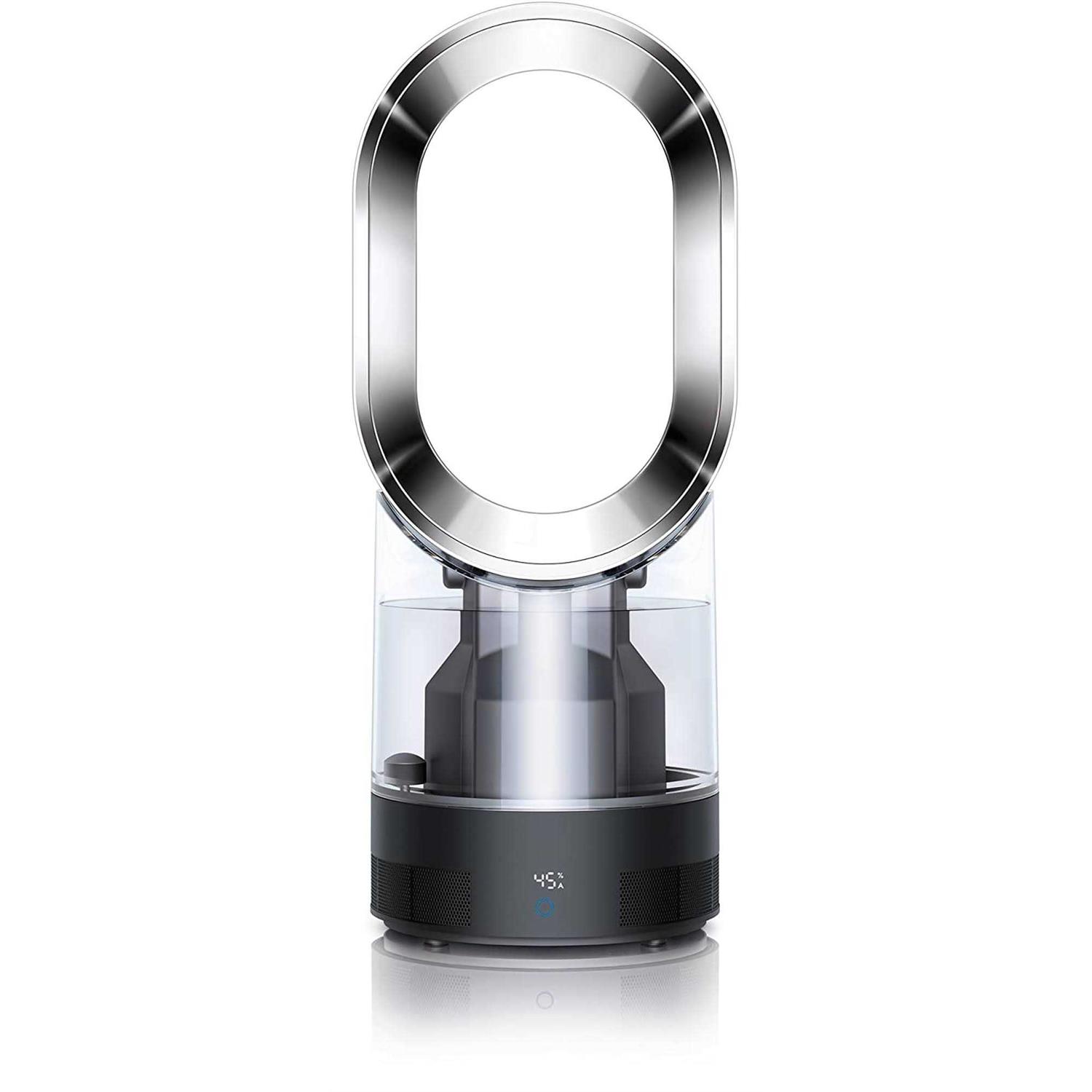 Dyson AM10 Humidifier (Black/Nickel) – 303516-01 The Dyson humidifier is 99.9% bacteria-free by exposing every drop of water to an Ultraviolet light through patented Ultraviolet cleanse technology. With one press of the remote, it uses intelligent climate control to measure both temperature and moisture in the air to help maintain a healthy environment across the whole room. Through air multiplier technology, the Dyson humidifier can cool you in summer and delivers bacteria-free Mist and hydrated air in winter. AAFA Certified Certified asthma & allergy friendly by the Asthma and Allergy Foundation of America. Parent Tested Parent Approved Awarded the PTPA seal of approval. The seal of approval families trust. Acoustically engineered for a night of quiet, hygienic humidification Dyson humidifier is engineered for up to 18 hours of continuous use, and has a sleep timer for automatic cut-out. It is the world’s only Quiet Mark accredited humidifier. Ultraviolet Cleanse technology Uses Ultraviolet Cleanse technology, exposing every drop of water to an ultraviolet light Even, whole room humidification Projects ultra-fine mist and maintains it throughout a 172 square ft room. Accurate climate control Measures temperature and humidity and adjusts accordingly to create a comfortable, hygienic environment. Patented Air Multiplier technology Distributes humidified air evenly, quickly and quietly across the whole room. Dual function for year-round use Delivers hygienic, even humidification in winter and high-velocity air to cool you in summer. Remote control Easy to use with precise airflow and humidity settings. Curved and magnetized to store neatly on top of the machine.
