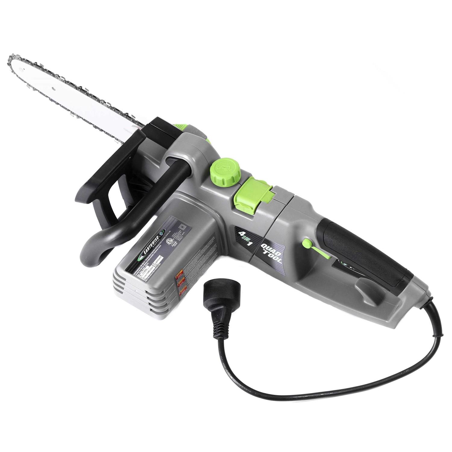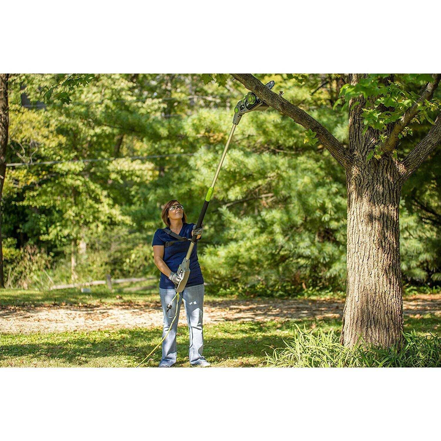 Earthwise Power Tools by ALM 2-IN-1 Pole chainsaw can easily be used as a handheld tool or with an extension pole for better reach. It is a lightweight, yet powerful tool to help you cut branches in your yard. The extension pole allows you to cut tree branches up high or tall shrubs without ever climbing a ladder. Using the pole also gives you more cutting precision because of its adjustable head, cutting and trimming in your yard has never been this safe and easy. Earthwise Power Tools by ALM 2-in-1 pole chainsaw that converts in seconds Powerful 7 Amp electric pole saw that can trim tree branches or wood limbs and cut up stumps or logs The corded chainsaw has 10 in. bar and chain with adjustable pivot cutting head that gives you 5 Different angle settings Pole saw with automatic oiling system with oil level window and tool-free tensioner adjustment Comfortable rubber over-molded handle with foam grip; Includes a protective blade cover for safe and easy storage.
