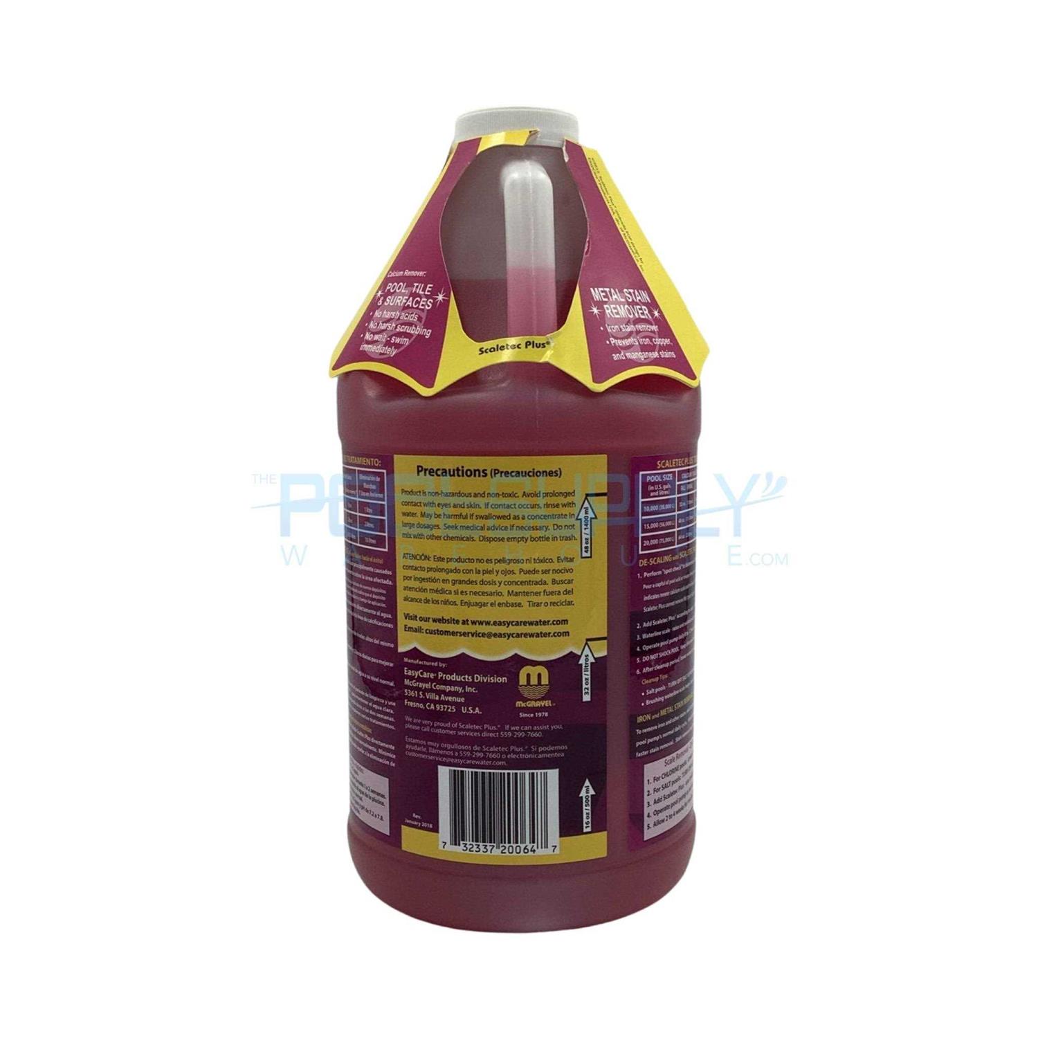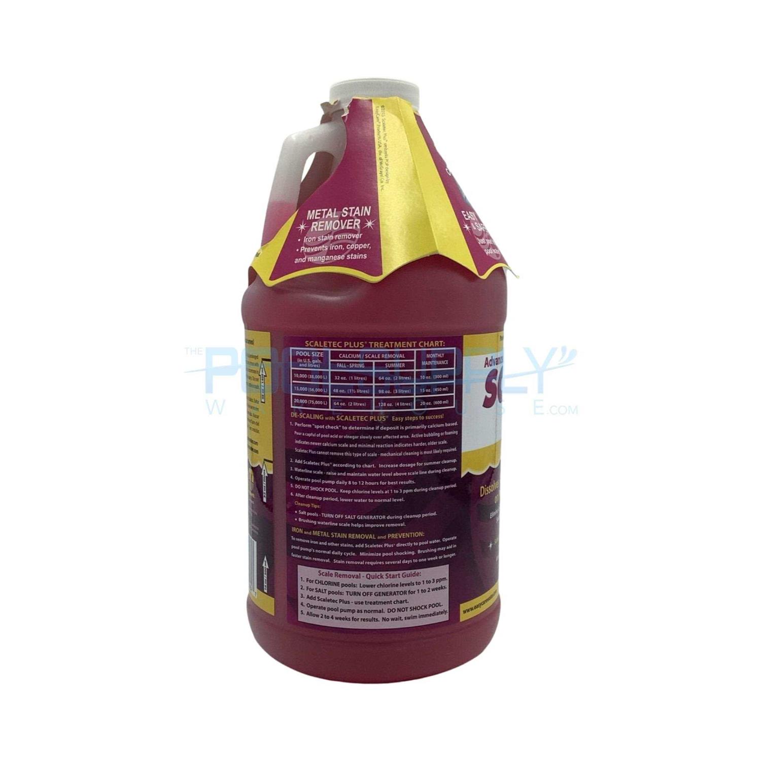 High performance swimming pool calcium descaler, iron stain and scum remover and preventative. Scale Tec Plus is the first pourable product that removes hardware buildup throughout pool surfaces, tile and all equipment with ought to scrubbing and acids. Highly effective in preventing iron, copper and manganese stains.