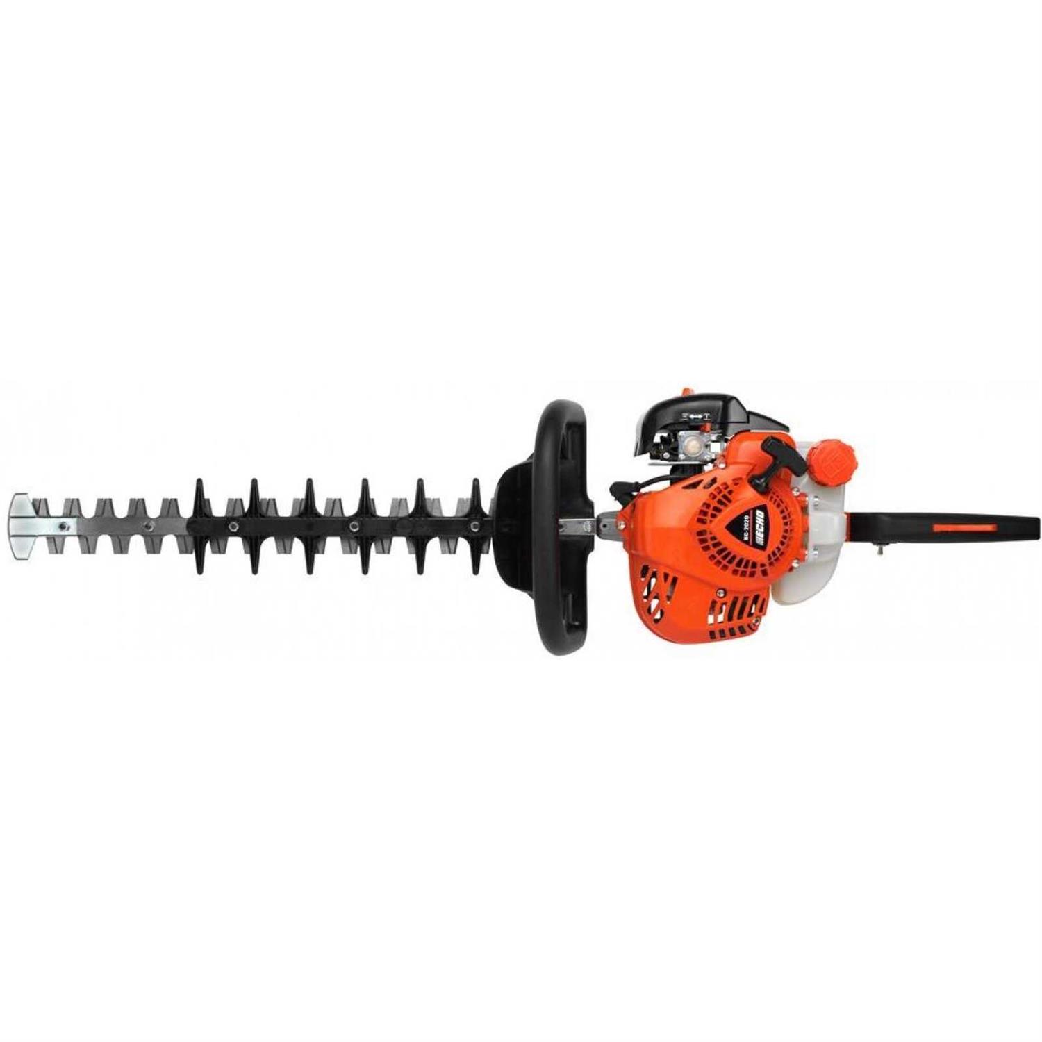 The ECHO hedge trimmer is lightweight and offers professional-grade features for dependability. Its 20 inch blades offer superior cutting performance and twice as many cutting edges as the remaining bush trimmer competition. A zero-type grease fitting and tool-less air filter cover makes maintenance easy on this gas powered hedge trimmer unit.