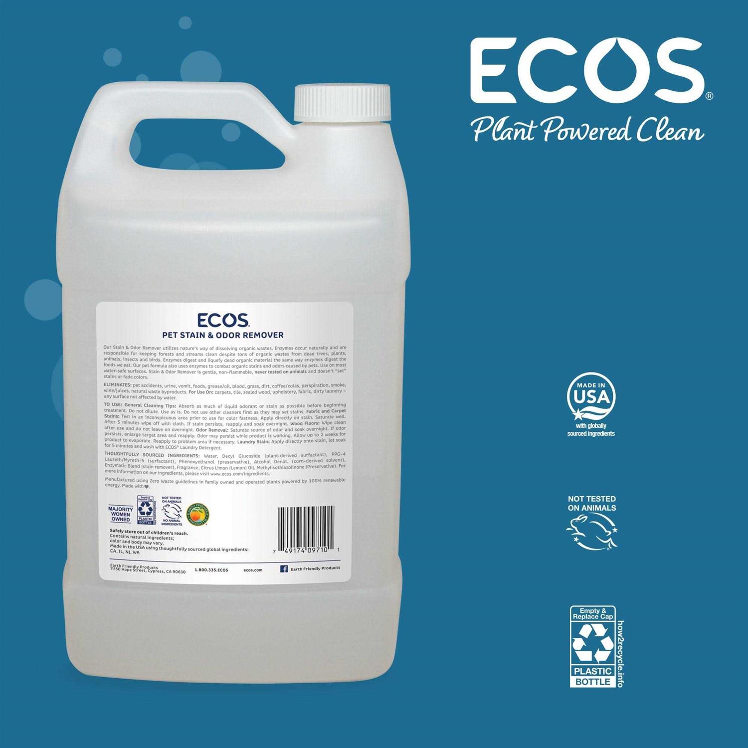 Earth Friendly Products Stain & Odor Remover is made with plant-powered ingredients and natural enzymes (enzymes digest and liquefy dead organic material). This product is never tested on animals and is safe to use on nearly all water safe surfaces. Stain & Odor Remover eliminates odors and stains caused by accidents, urine, vomit, blood, and food. Available in a 22oz spray bottle, 32oz refill, and a 128oz refill.