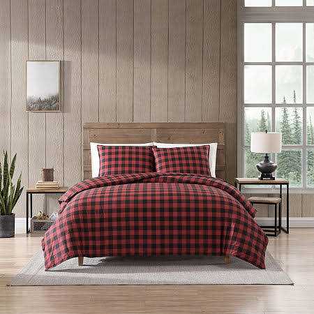 Eddie Bauer takes inspiration from a classic buffalo check to create a bold tailored look for your bedroom. This iconic plaid in red and white will bring peaceful dreams of the outdoors inside while you sleep in comfort. Layer with our Eddie Bauer sheet sets. Duvet cover features inside ties to hold the comforter in place with button closure.