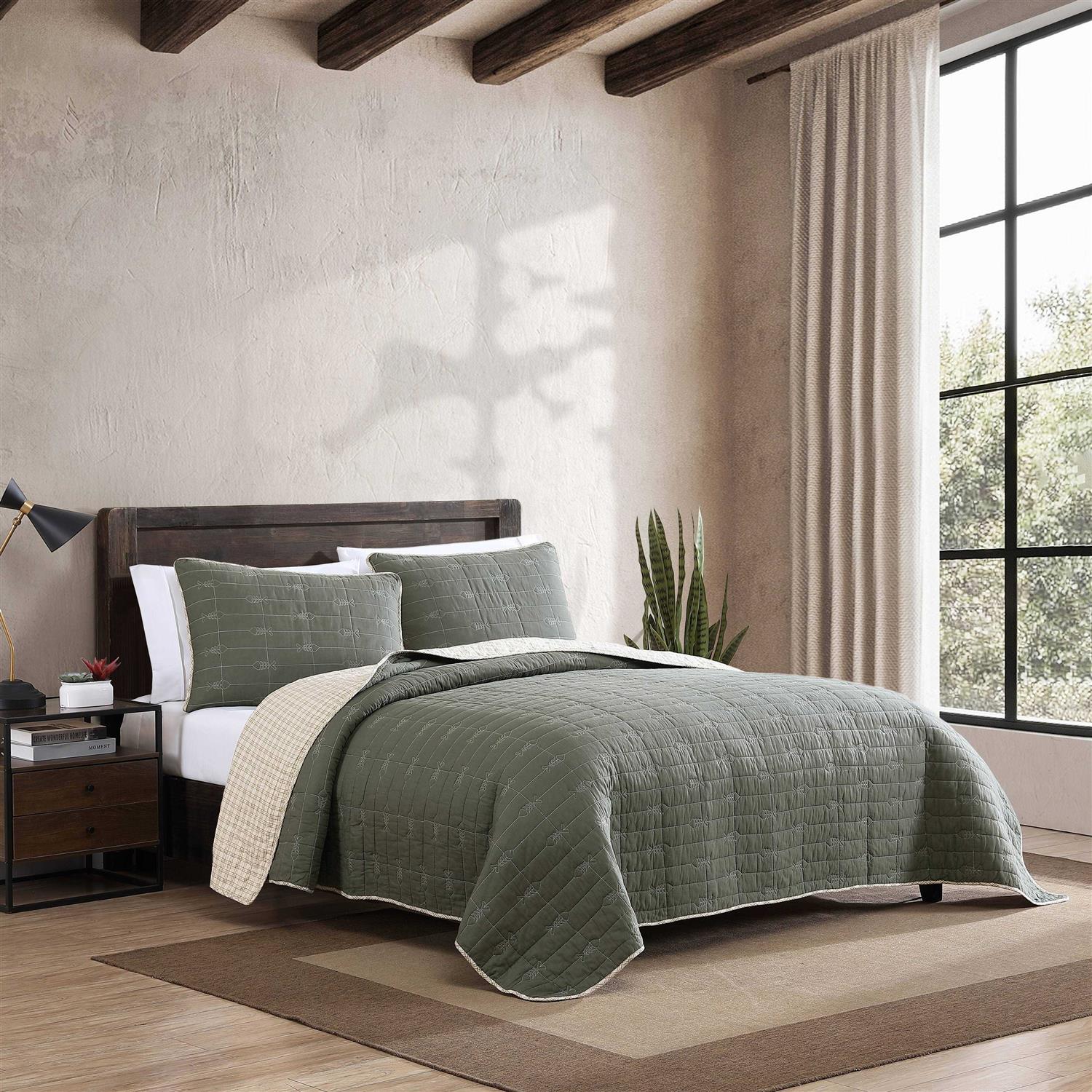 Introducing the iconic troutdale collection from Eddie Bauer, our new essential quilt perfect for layering or using on its own. Available in modern yet classic solid army green, reversing to khaki. Inspired by fishing in oregon, troutdale features a trout quilt stitch. Made from 100% cotton and pre-washed for added softness. The blended 80% cotton 20% polyester fill stays in place wash after wash. Shams are included to round out the ensemble. (one sham included with twin size.) rounded corners and branded logo label are the details you’d expect from Eddie Bauer. Packaged thoughtfully without plastic. Machine washable for easy care. The jasper trail collection is available in multiple colors, sold separately.
