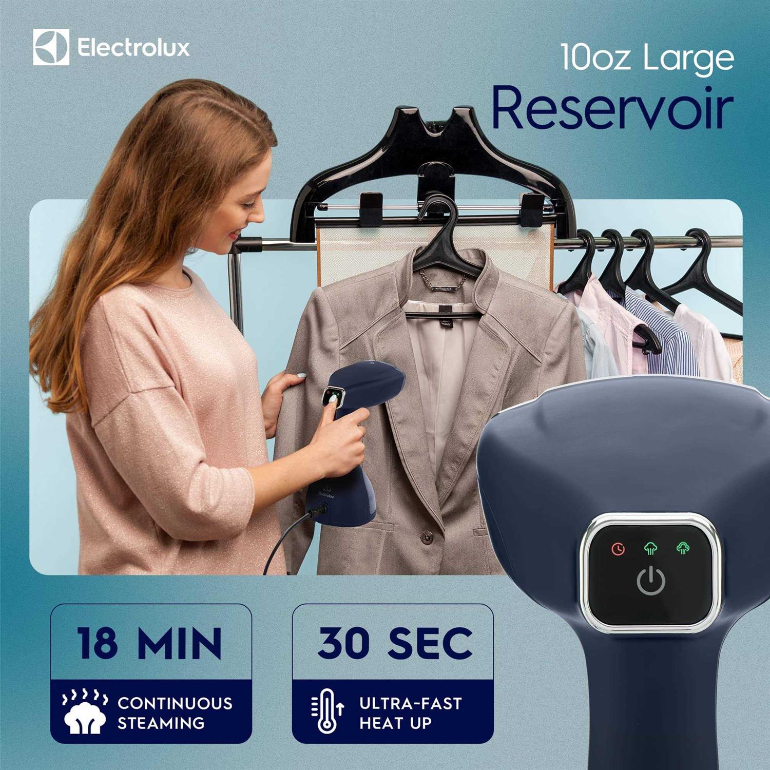 Introducing the Electrolux LX-15002 Handheld Garment Steamer – a powerful and convenient solution for wrinkle-free clothes. This steamer has 1500 Watts of power and two steam levels to handle different fabrics and wrinkles. It features an electromagnetic pump for efficient steam generation. With auto shut-off, it turns off when not in use for safety and energy conservation. The removable water tank makes it easy to fill and clean, and the ceramic soleplate ensures smooth gliding without damaging your clothes. The included fabric brush helps remove lint and pet hair. It heats up in under 30 seconds and provides continuous steam for up to 18 minutes. With a 12-foot cord, it offers flexibility and convenience during use. Experience the simplicity and effectiveness of the Electrolux LX-15002 Handheld Garment Steamer for wrinkle-free clothes every time.