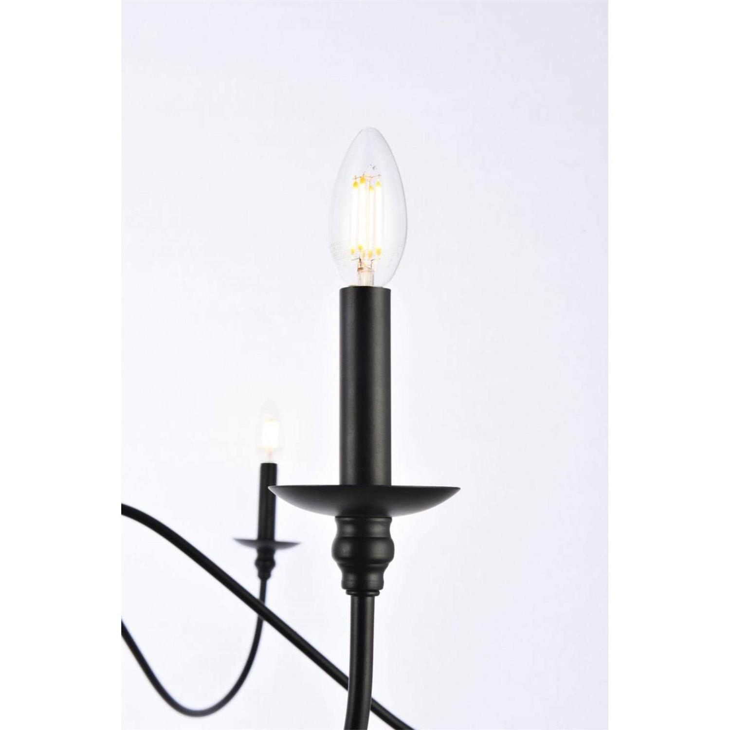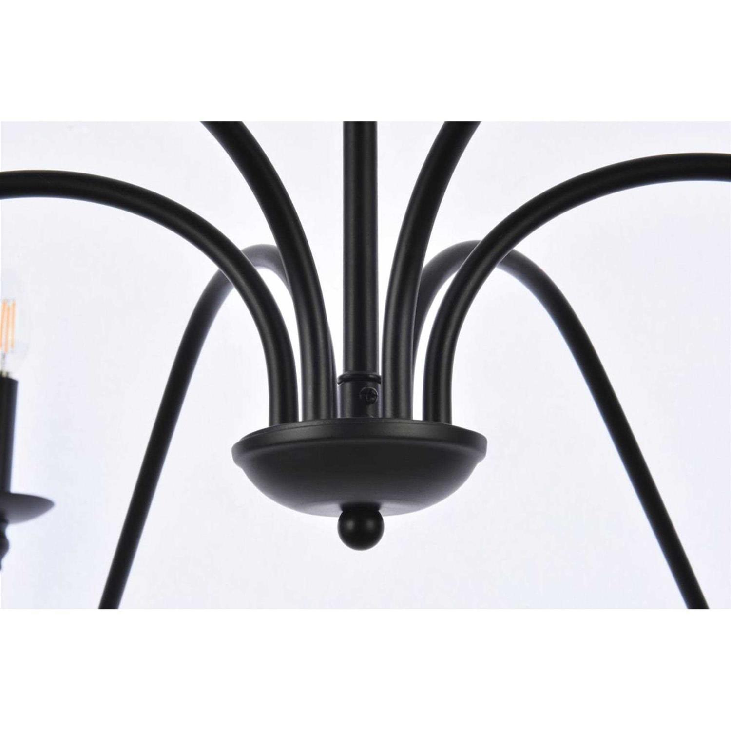 Add a touch of elegance to your space with the Elegant Lighting Rohan 6-Light Chandelier. This chandelier features a sleek black finish and comes with a 5 feet chain that is adjustable from 25.5 inches high to 86.5 inches high. It requires 6 e12 candelabra base max 40 watt bulbs (not included) and works with any dimmer switch. With no assembly required, it is perfect for over your dining table, bedroom, or in the foyer. Suitable for indoor application.