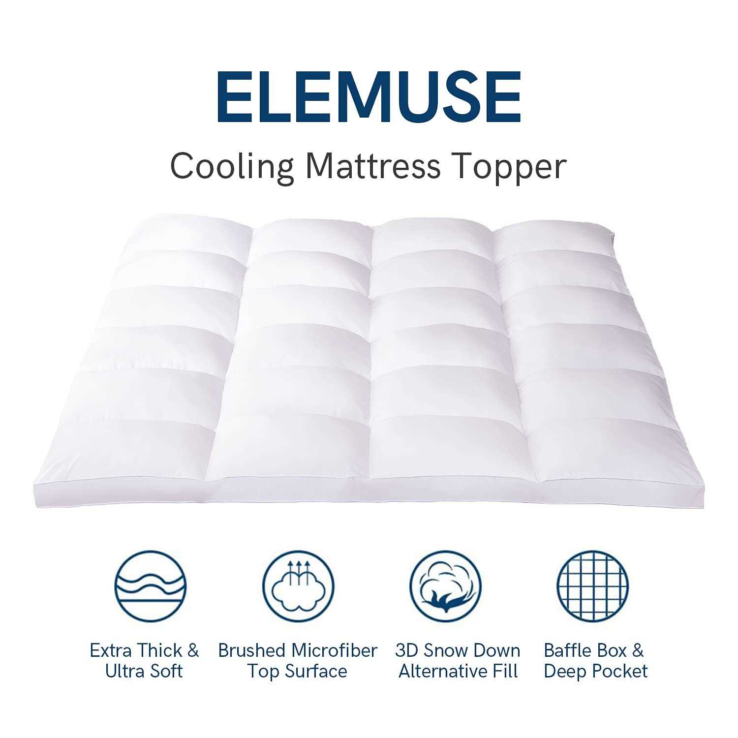 ELEMUSE Cooling Mattress Topper Thick Extra Mattress pad Cover for Back Pain