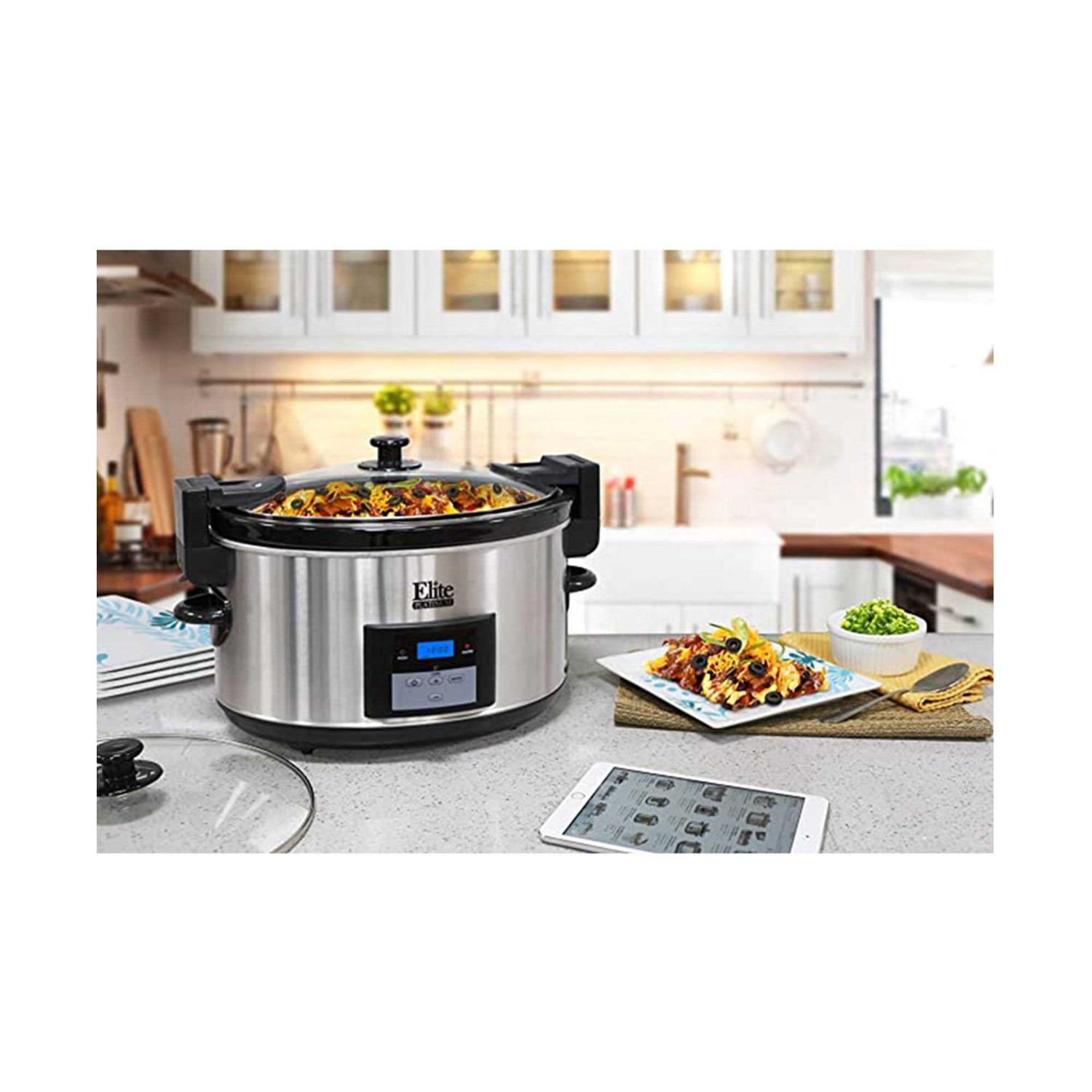 Preparing meals for the family has never been easier when using the Elite Platinum 8.5 Qt. It has been designed for today’s family that is always on the go. You will have ultimate cooking control and flexibility with the 20 hr advanced programmable timer to include Low-Medium-High temperature controls settings. The locking lid with sealing silicone gasket traps in moisture and nutrients. The added assurance of a locking lid makes this an ideal way to carry your culinary creations to any get-together and keep them warm when you arrive! The sleek exterior design, tempered glass lid, cool touch side handles and knob combined with a beautiful stainless steel finish makes this a modern addition to any kitchen. The super-sized 8.5 Qt. stoneware pot makes clean up a breeze. Go ahead and make your favorite chili’s, soups, stews, poultry, meat and secret recipes perfectly every time. Your family will love it and so will you!
