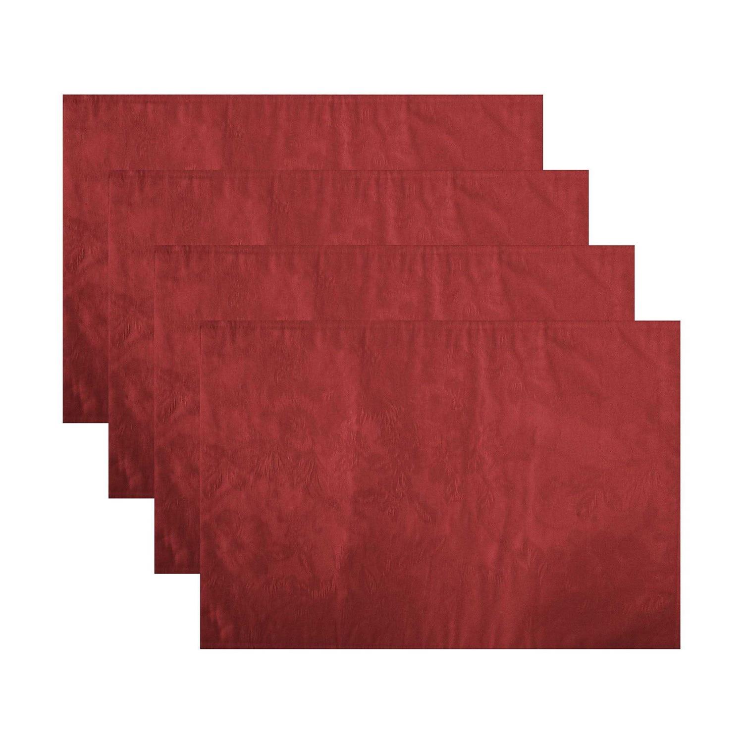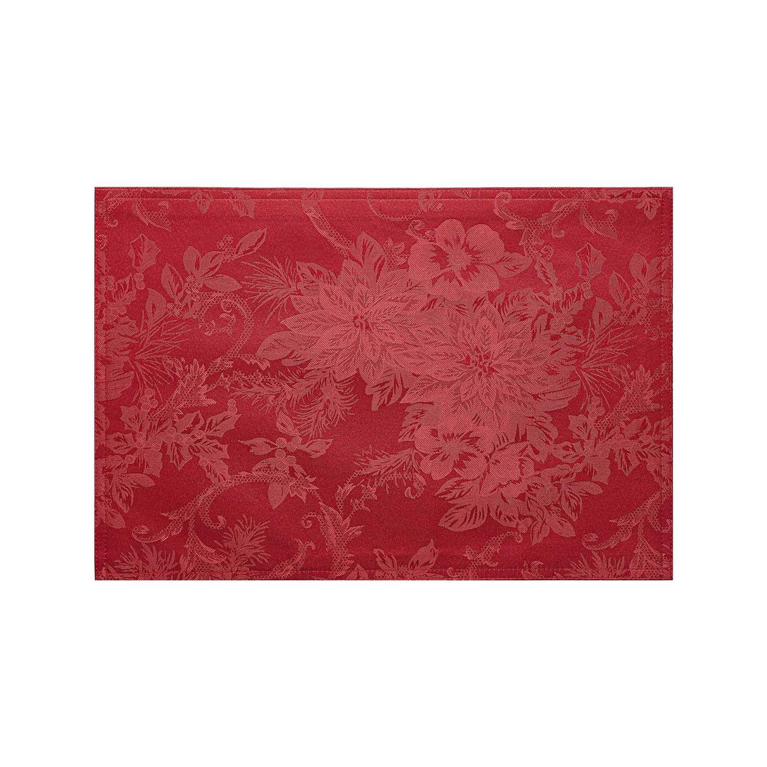 The Poinsettia Elegance set of four placemats is the perfect solution to your decorating and table linen needs. A delicately woven jacquard poinsettia design provides the versatility of a solid color, with a touch of fashion. The placemats’ silky fabric can be ironed to release stubborn creases, and hemmed edges add a finished look and prevent wear and tear. They’re excellent for special occasions, events, holiday parties, family gatherings and everyday use during the holiday season.