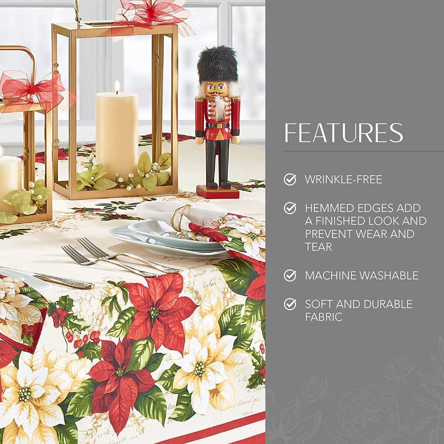 Elrene Red and White Poinsettias Tablecloth