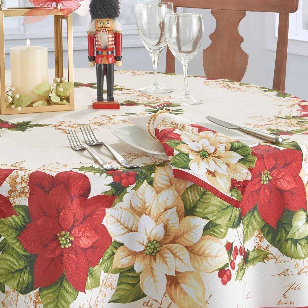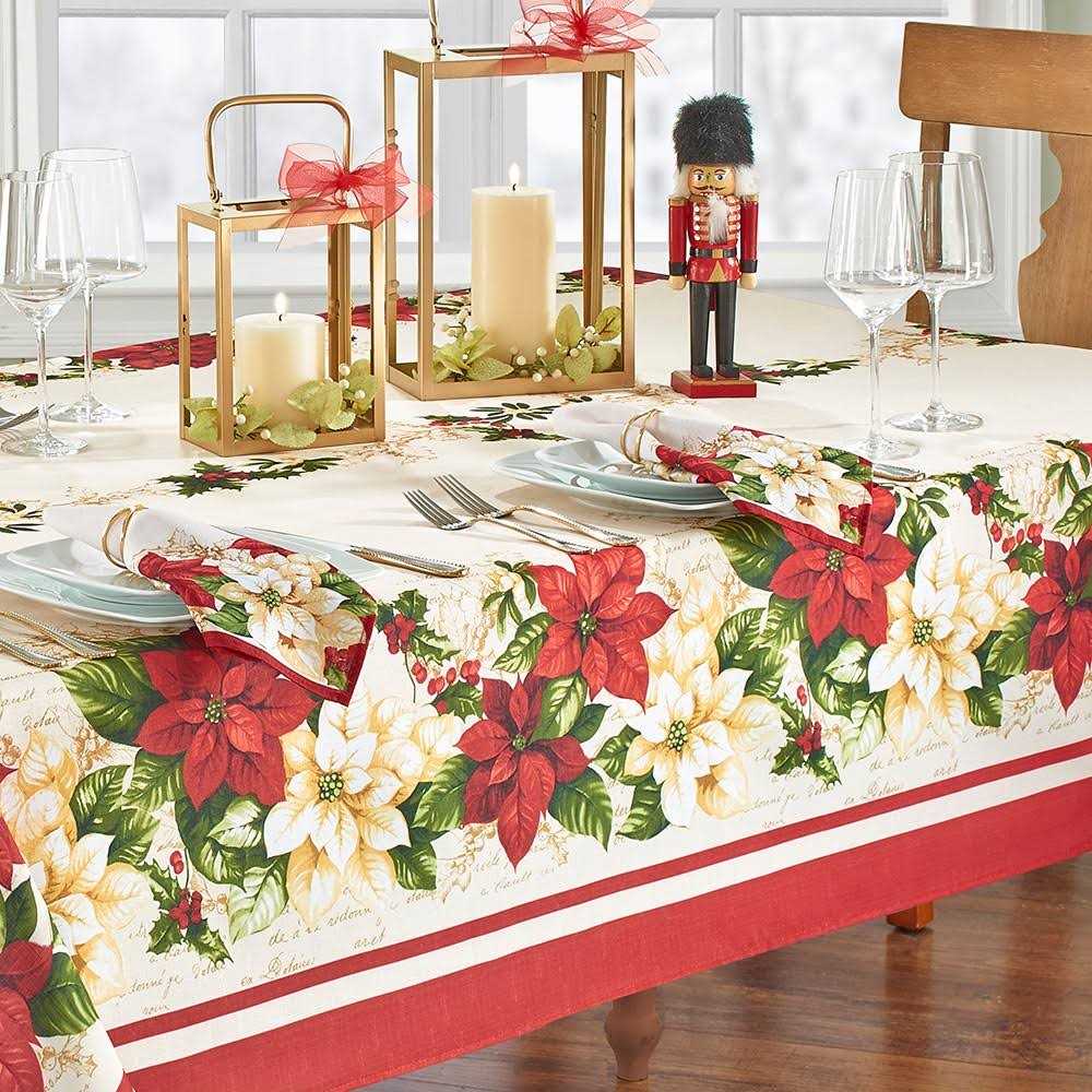 Elrene Red and White Poinsettias Tablecloth