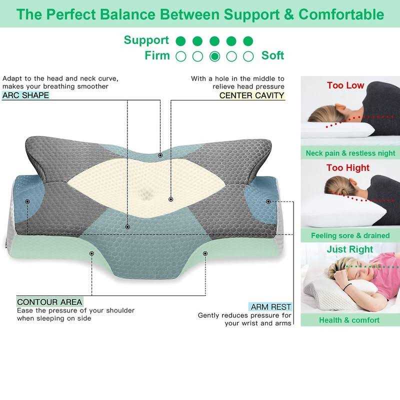 The cutouts on the side give your top arm a place to rest and keep it at an angle so your shoulder is not hunching over in front of you. That will provide sleeping firm support with amazing comfort and softness.