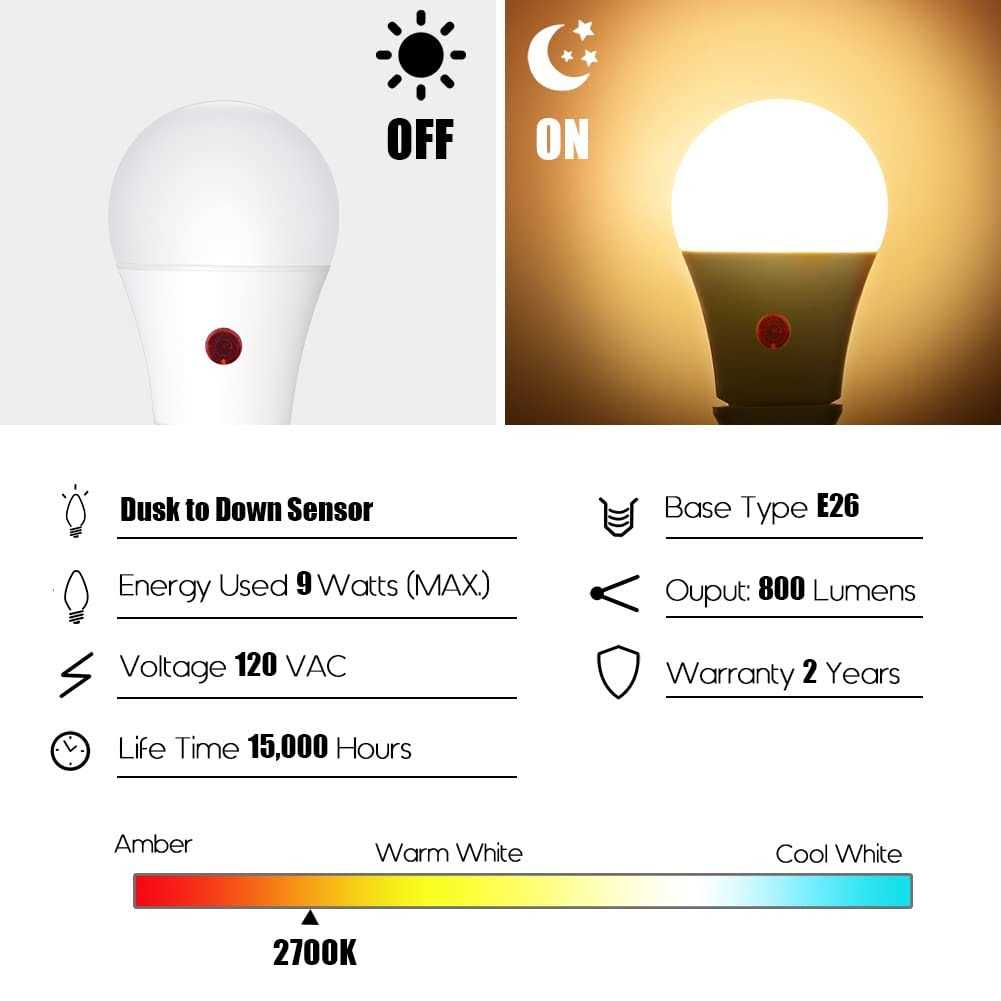 Emotionlite Dusk to Dawn Sensor Light Bulbs Outdoor White LED Bulbs