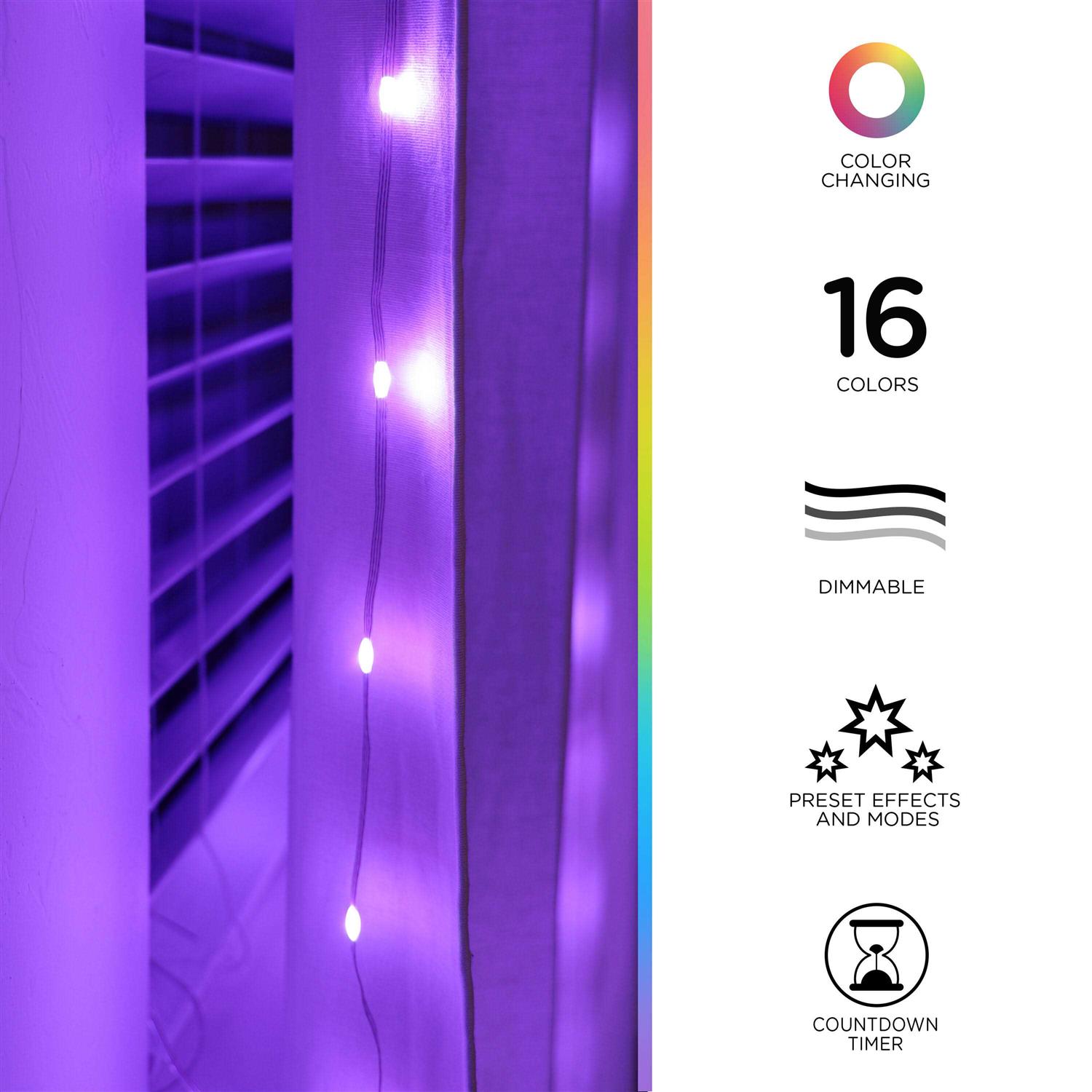 Enbrighten Basics LED Curtain Lights USB Powered Color Changing Fairy Lights with Remote