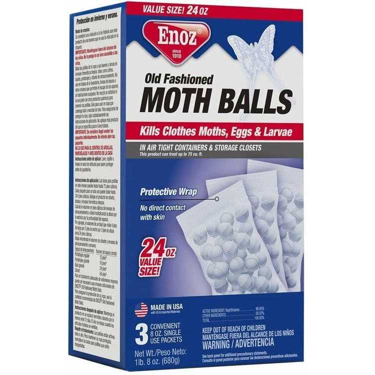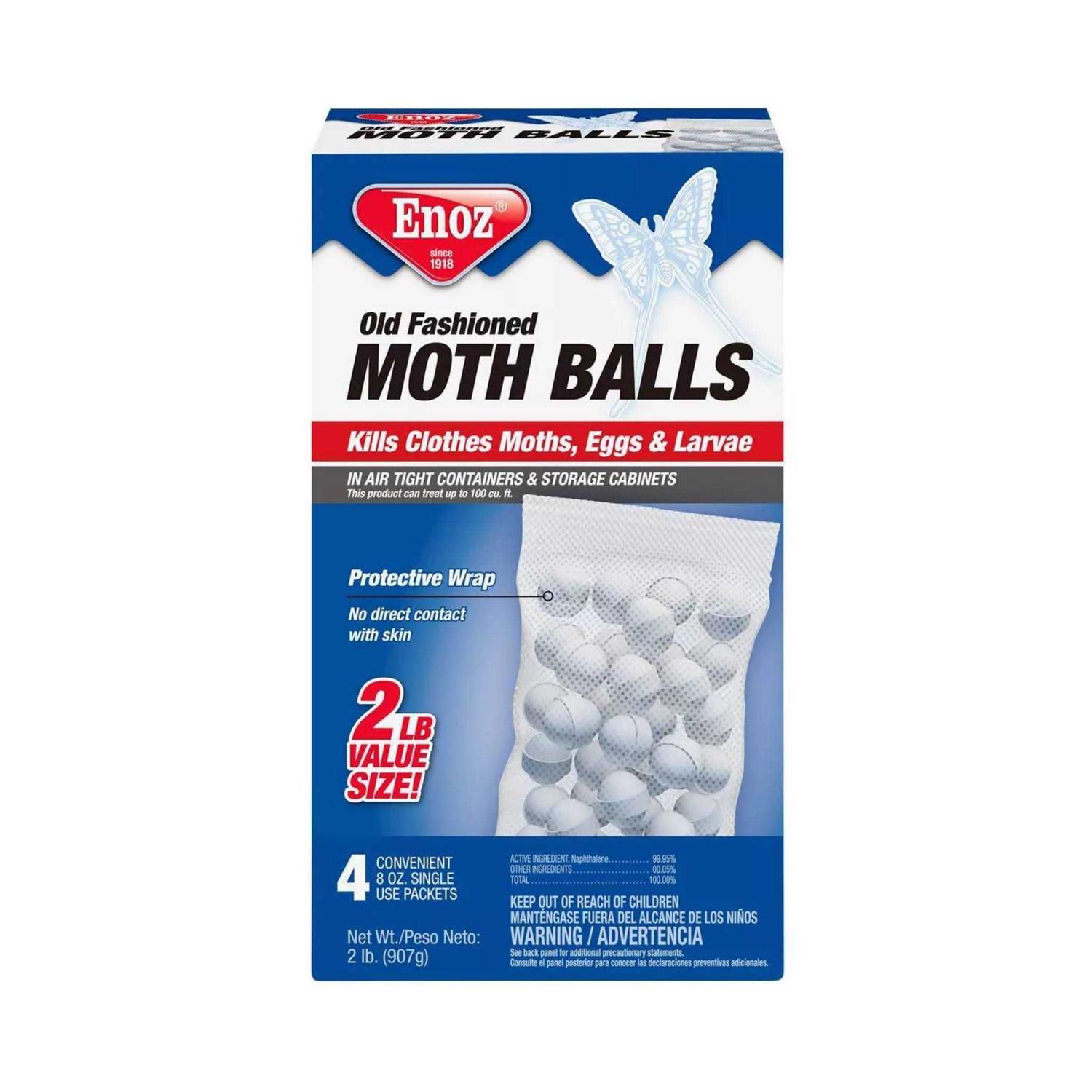 Enoz is the only brand of Moth Preventives still made in the USA! All Enoz products are EPA registered and provide the only sure method of killing destructive moths, moth eggs and larvae. Enoz Moth Balls, Flakes and Crystals are ideal to use for long-term or seasonal storage of your valuable clothing and other household items storage areas such as drawers, chests and trunks. Enoz Moth Preventives penetrate every fold and crease of stored items ensuring worry free moth protection.