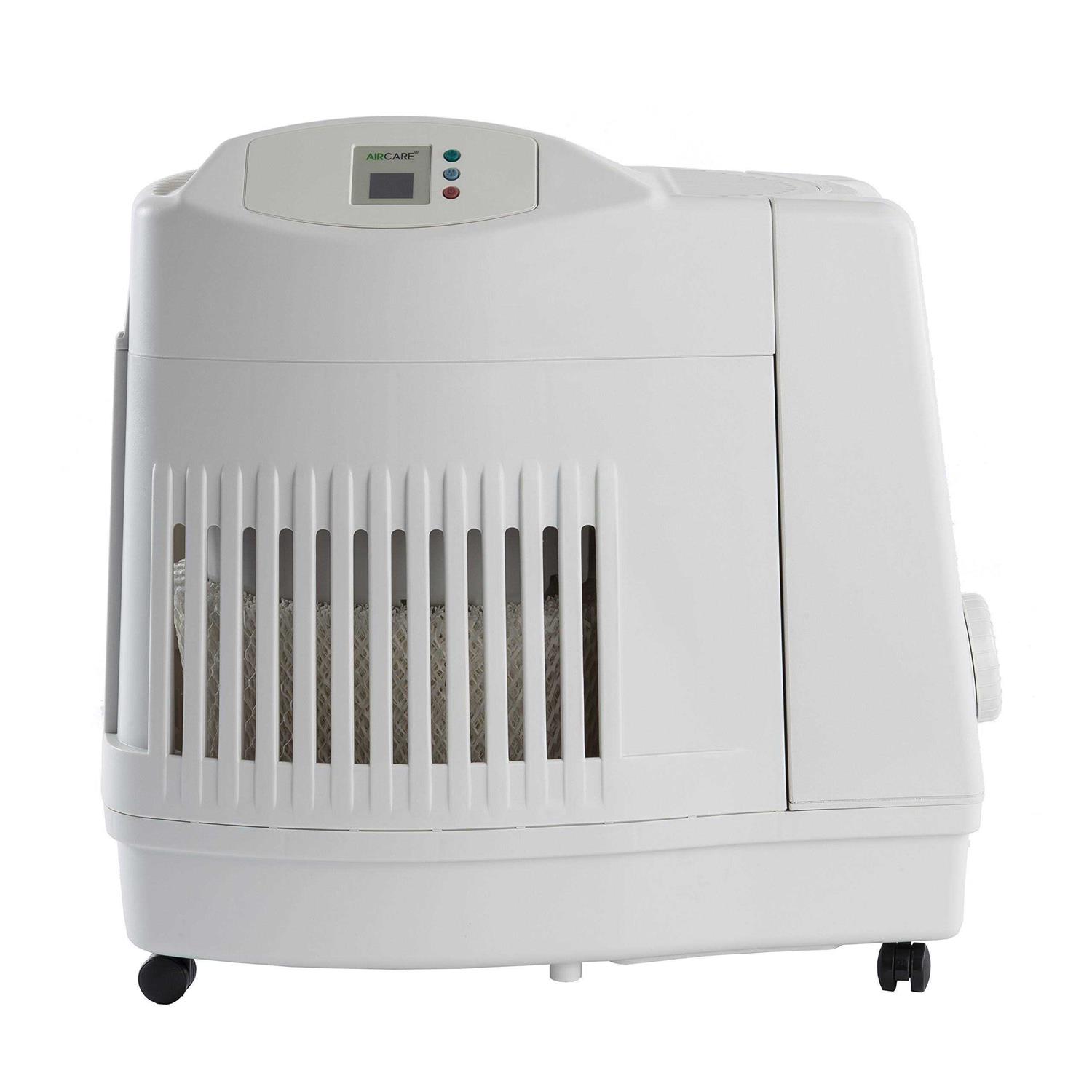 The AIRCARE MA1201 humidifier, adds invisible moisture to your environment. It works by moving dry air through a saturated wick. Maintaining proper humidity levels of 30-50 percent in your home, office or workplace has been scientifically proven to help prevent the flu and allergies. It also hydrates your skin, alleviates dry eyes and scratchy throats, and can reduce snoring. With your doctor’s approval, you can use the AIRCARE evaporative humidifier to increase humidity and reduce asthma and allergy symptoms. It also protects fine furniture, musical instruments, collectibles and wood floors by providing them with adequate moisture through the air. Proper humidity makes you feel warmer allowing you to lower your thermostat setting which will save money in the long run. The high-efficiency AIRCARE evaporative humidifier is easy to plug in and use. It features water refill and check filter indicators so you know when the unit needs attention.