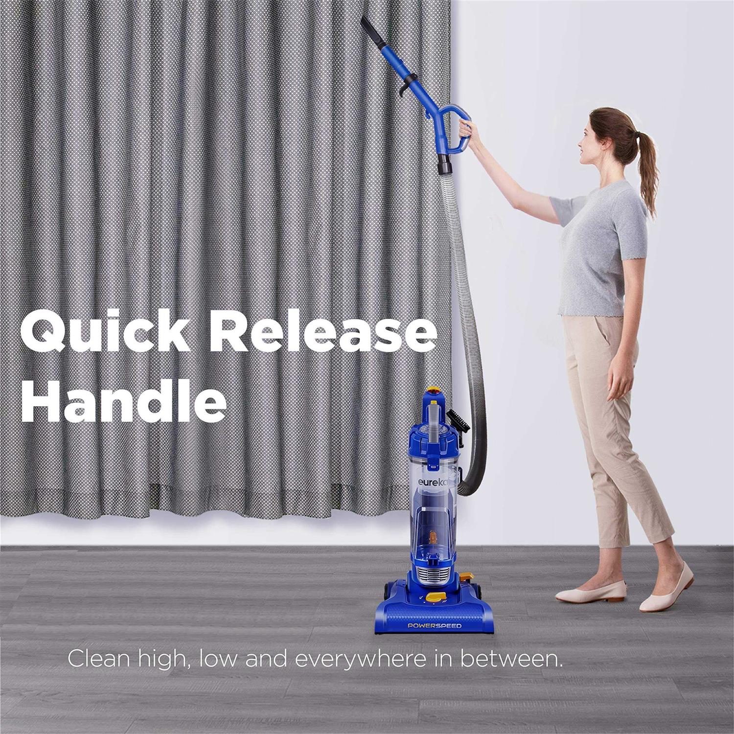 The Eureka powerspeed all floor vacuum with attachments lets you give your house the clean it deserves without breaking your budget. Packed full of features like an XL dust cup, washable filter, accessories, and a wide nozzle, this lightweight but powerful vacuum cleaner wont disappoint. Clean your floors and above with ease. It works on carpets, rugs, hardwood floors, cars, ceilings, lampshades, furniture, and more.