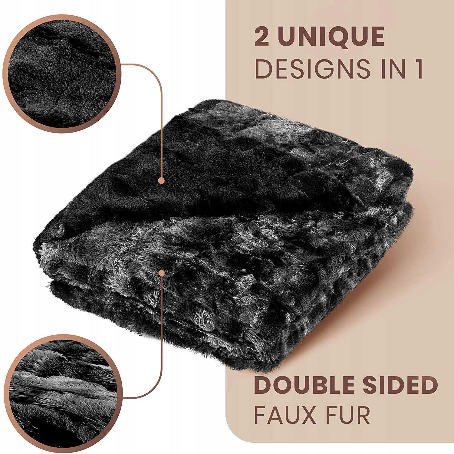 2 Blankets in 1: Our soft blanket features a faux animal print on 1 side, and a classic solid print on the other. Applies to gray, chocolate, black, and artic blue throws The Only Double Sided Faux Fur Blanket: Ours is the only throw with the same high quality plush faux fur on both sides. Stop trying to figure out which side of the fuzzy blanket is the comfy side, they both are Perfect for 1 or More People: Our large throw blankets measure 50 x 65 inches. This comfortable size accommodates individuals, couples, and families while relaxing indoors or outdoors Your Favorite Faux Fur Throw Blanket Year Round: We designed this super soft blanket with just the right weight to keep you warm and cozy, yet it’s light enough so you stay comfortable year round Machine Washable, Dryer Safe: Other fluffy blankets aren’t designed to withstand machine washing. Ours was created with ease of care in mind. Wash with cold water on the gentle cycle. Tumble dry with no heat.