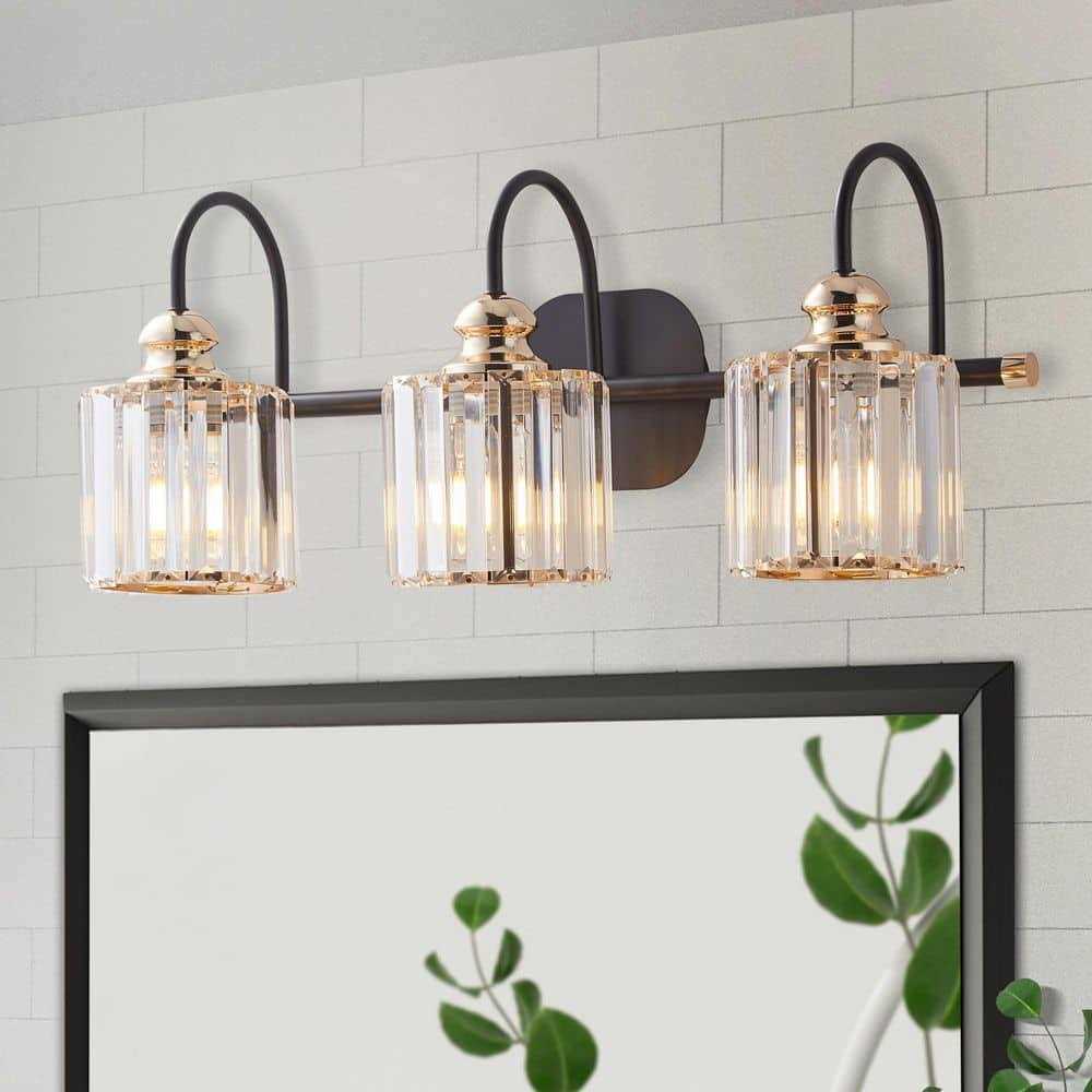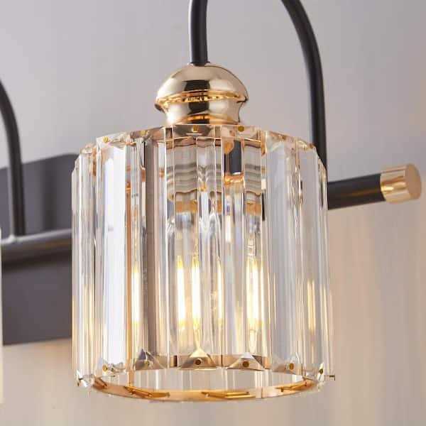 ExBrite Merrin Black Bathroom Vanity Light with Crystal Shades