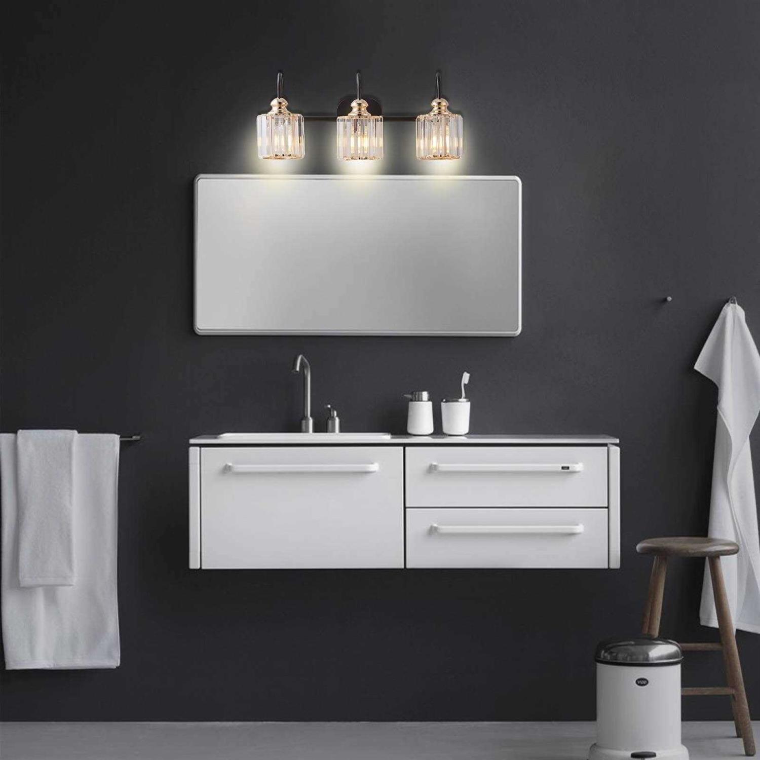Exbrite Modern Rose Gold Bathroom Dimmable Crystal Vanity Lights