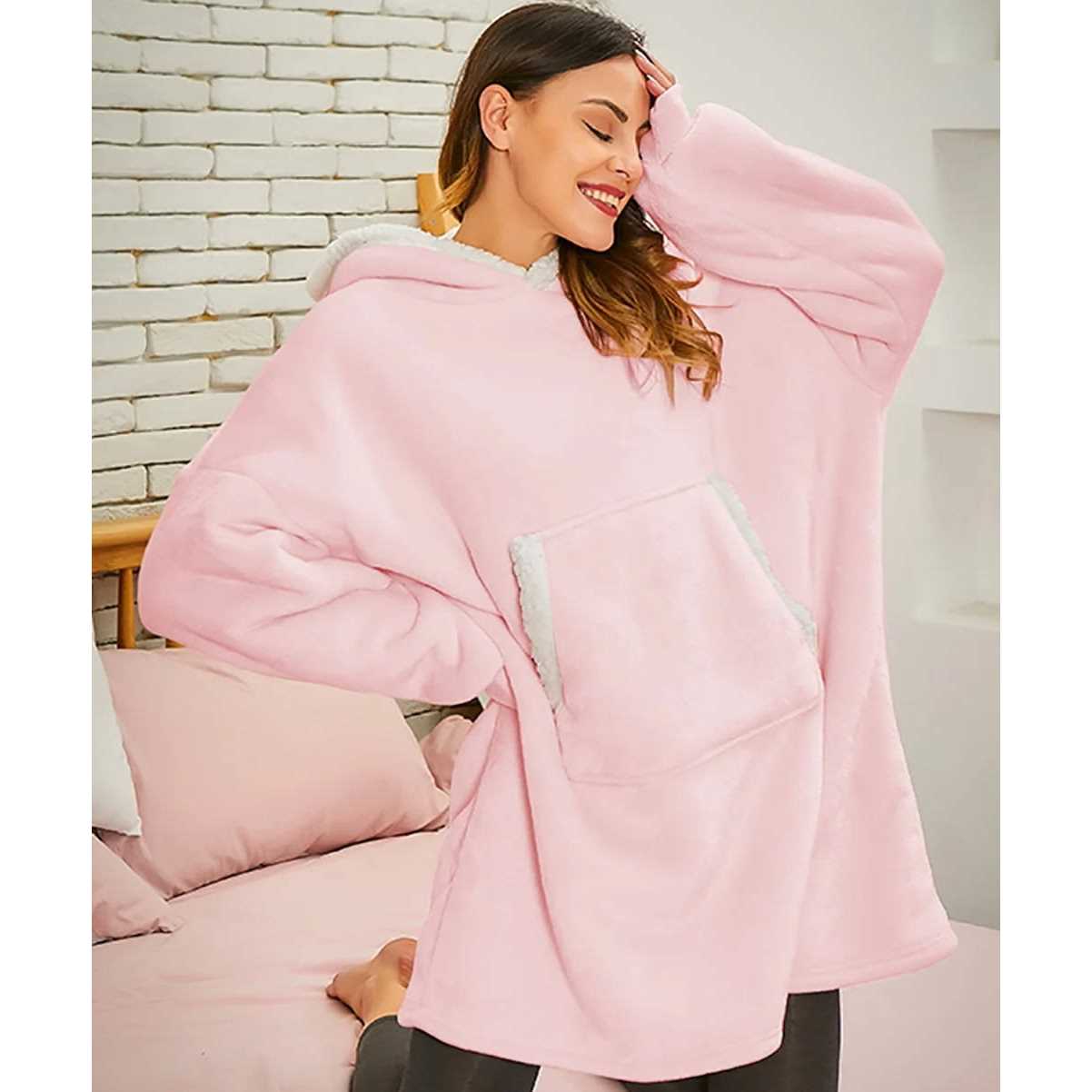 Fantaslook Wearable Blanket Hoodie Sweatshirt for Women and Men, Oversized Sherpa Fleece hoodie Blanket with Sleeves & Pocket Oversized blanket hoodie use skin-friendly fabric, Its double layered with luxurious fleece on the outside and premium fluffy sherpa on the inside. Wearable blanket sweatshirt with a front large pocket that give enough space for your hands and snacks. Pull your legs into the plush fluffy sherpa to cover yourself completely on the couch, move around freely while taking your warmth wherever you go. The hooded blanket sweatshirt for women and men is a great choice for you to watch TV or have a short break in the afternoon. Fleece blanket hoodie is warm enough like a moving heated quilt to help you go through cold weather. This hoodie blanket is a perfect gift for your family and friends warmth and love. Size Chart one size — Bust 168cm/66.15 inch Length 92cm/36.22 inch Sleeve 55cm/21.65 inch Note: 1. Machine washable in gentle cycle, tumble dry on low heat, shrink resistant and not pilling. 2. There may be a little difference with what you get.Color may be lighter or darker due to the different PC display. 3. Vacuum packaging, there may be some wrinkles, it is recommended to wash the blanket hoodie and hang to air dry, It will be back to normal in two days.