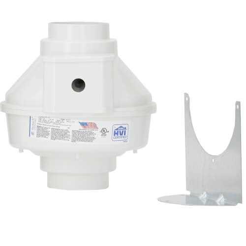 Fantech Centrifugal in-line fan features a vibration-welded seam that ensures leak-proof housing. It mounts in any angle at any point along the ductwork and straight-through airflow design for quick and easy installation. This fan with Class B insulation supports 100% speed control through varying the voltage by using a solid-state or transformer type control. Fan featuring FC type mounting clamps allow removing the fan quickly and easily for services. It delivers airflow up to 167 CFM. Thermoplastic housing ensures greater protection to fan and motor. This 2899 RPM fan has voltage rating of 115-Volts current rating of 0.72-Amp and power rating of 80-Watts at 60-Hz. It operates in air stream temperatures up to 140 deg F. It measures 10-9/16-Inch x 10-Inch. It uses 4-Inch ducts. It has a adhesive caulk that joins and seals the housing. It is perfect for multiple point exhaust residential and commercial applications crawl space venting or make-up air supply. It serves as booster fans to move air from one room or area to another. In-line fan is HVI certified and cULus listed.