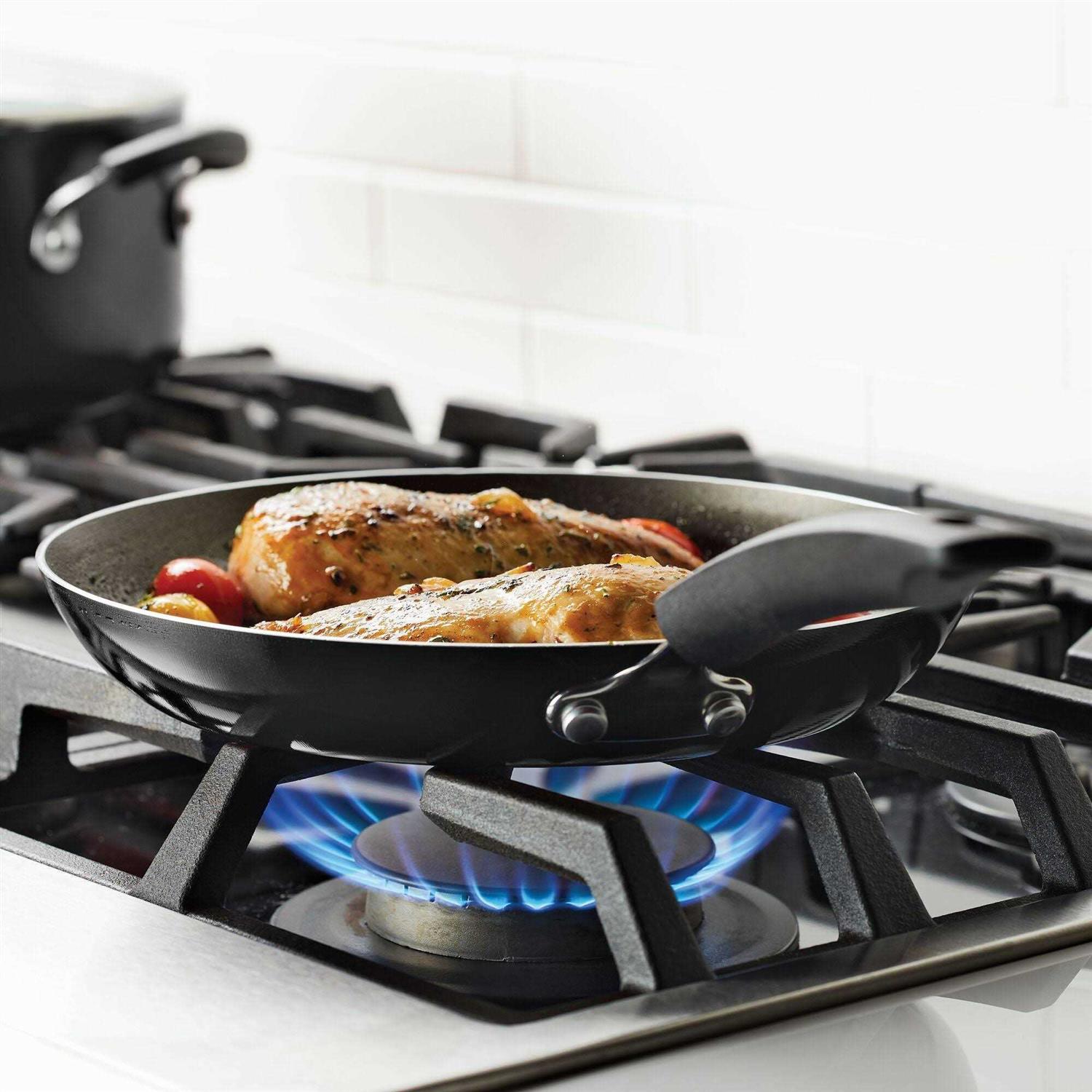 This huge set of essentials includes all of the saucepans, frying pans, pots, and baking sheets you’ll ever need for easy, convenient, everyday cooking. Long-lasting nonstick interiors provide excellent food release for family favorite recipes, and colorful exteriors add a touch of style to any kitchen. Heavy-duty aluminum heats quickly and evenly, and is oven safe to 350F. The strong handles provide a confident grip, and glass lids seal in heat and flavor while you watch foods cook. Plus, this kitchen pots and pans set comes with a mini nonstick frypan, a mini nonstick griddle pan, and three LocknLock storage containers for airtight, leakproof storage of ingredients, pantry items, or even leftovers.