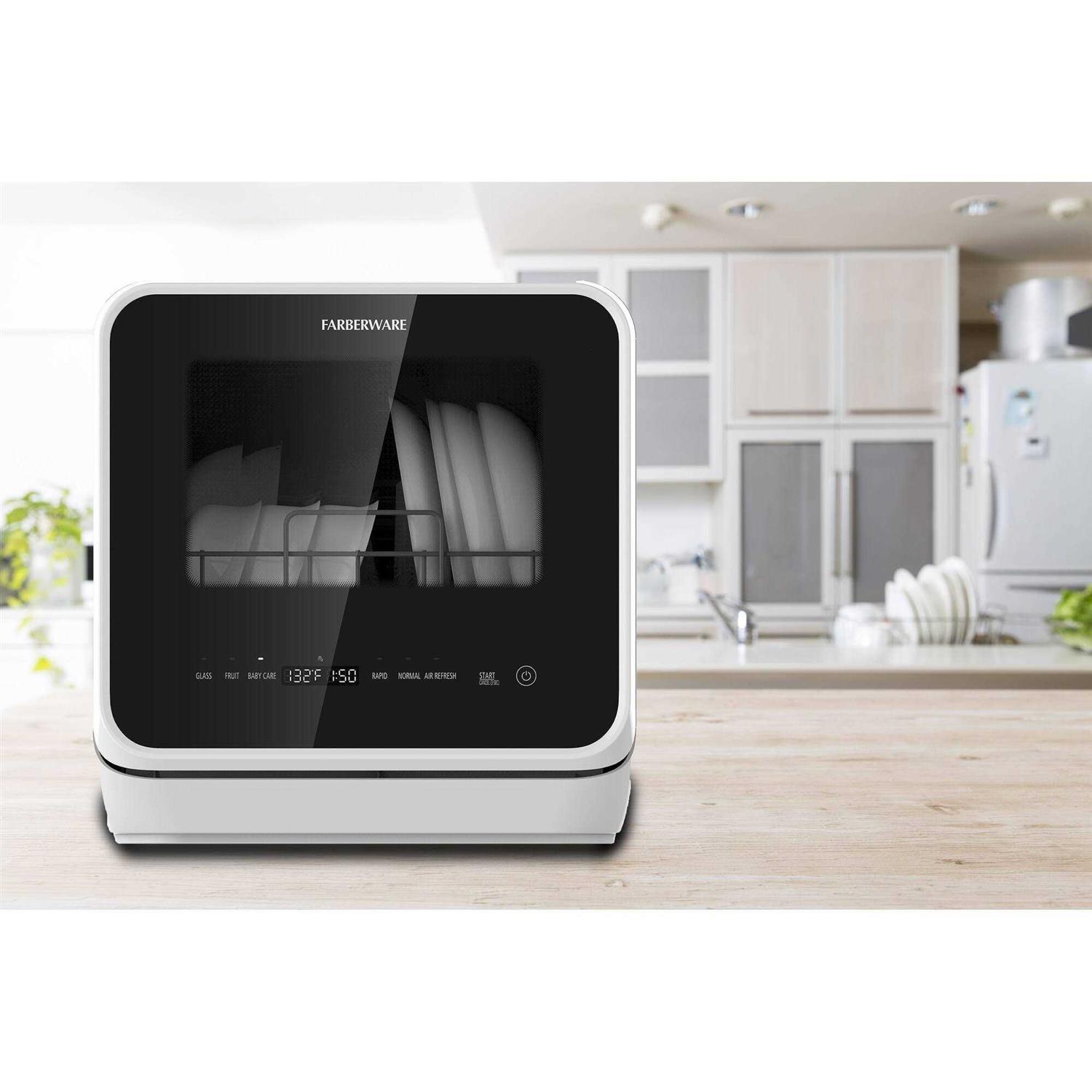 Whether it’s in your kitchen, camping, or on your boat or RV, dirty dishes are now a thing of the past. The Farberware Professional Portable Dishwasher can be placed on any countertop or sturdy table and gives you the choice of using its built-in water tank or a quick faucet hookup. From Farberware.
