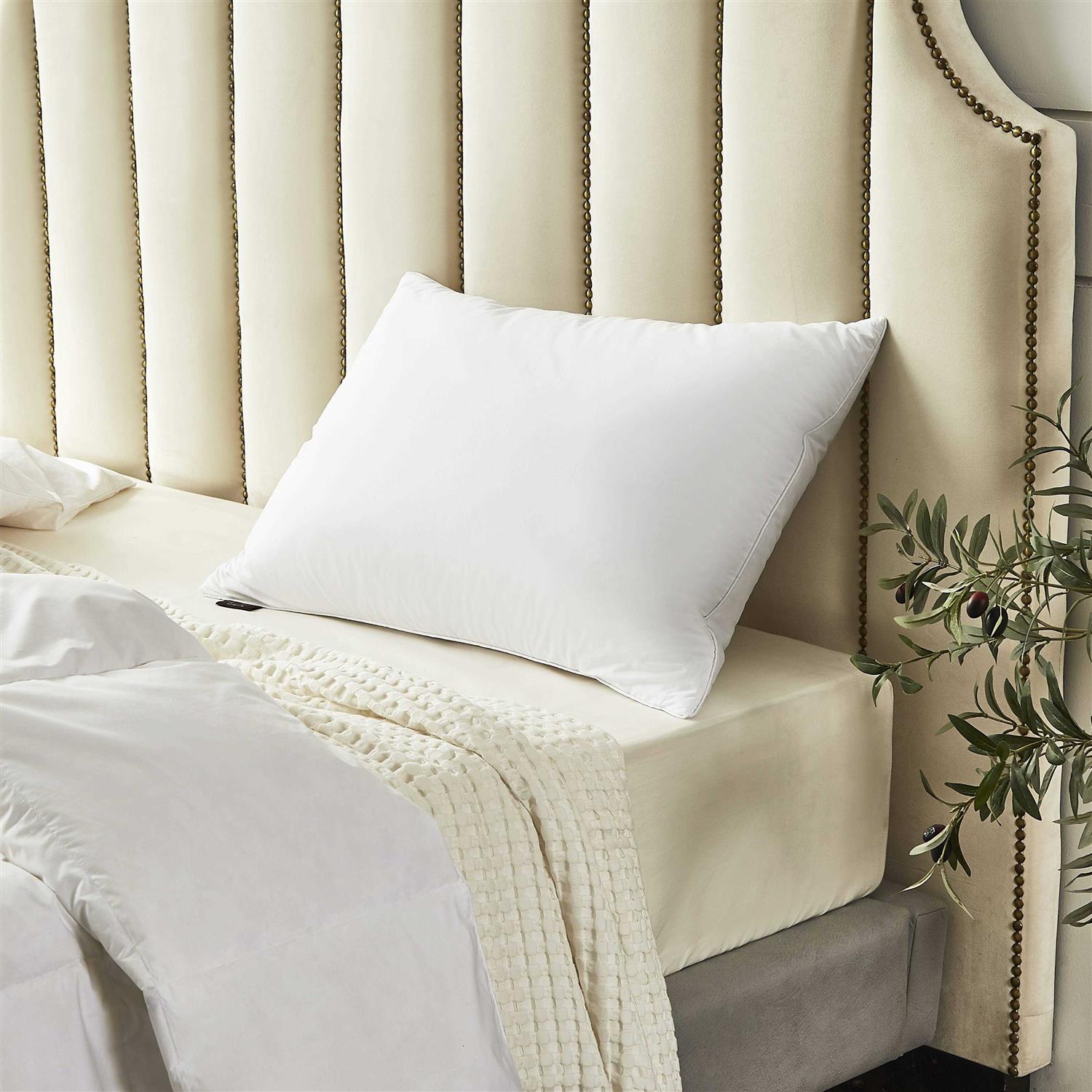 The beautiful 100% organic cotton is a tightly woven pillow covering with a 260 thread count that is Oeko-Tex standard 100 certified. A soft outer wrap of down alternative polyester makes it soft to the touch and creates medium- firm pillow suitable for many sleeping positions. Great for back and side sleepers. Pillow outer wrap is filled with down alternative polyester fill. Pillow core is filled with hypoallergenic blend of feather and down for comfort and support. FreshLoft process ensures that the feather and down fill is clean of dust dirt and allergens. Certified to the Responsible Down Standard (RDS) contain down or feathers from farms certified to animal welfare requirements. Save earth choose to reuse. Package made with recycled material. Imported. Dry clean only.