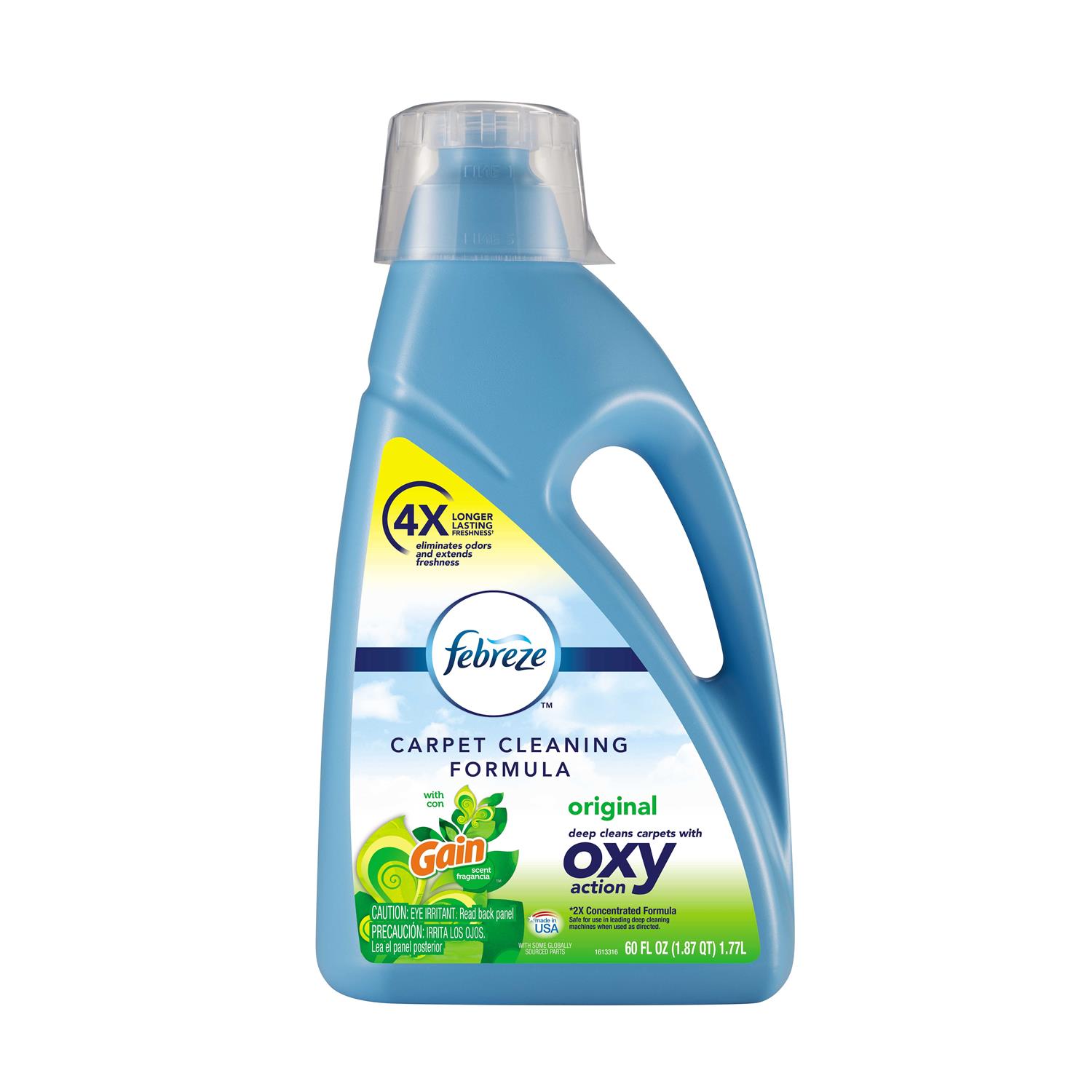 Clean your carpets with the fresh scent of Gain! Febreze With Gain Scent eliminates odors and extends freshness. Plus, it contains oxy to start working on contact to mobilize, lift, and penetrate stains at the source. Febreze With Gain maximizes the performance of all leading upright deep-cleaning machines, including rentals. The earth-friendly formula is free of dyes, phosphates, and heavy metals.