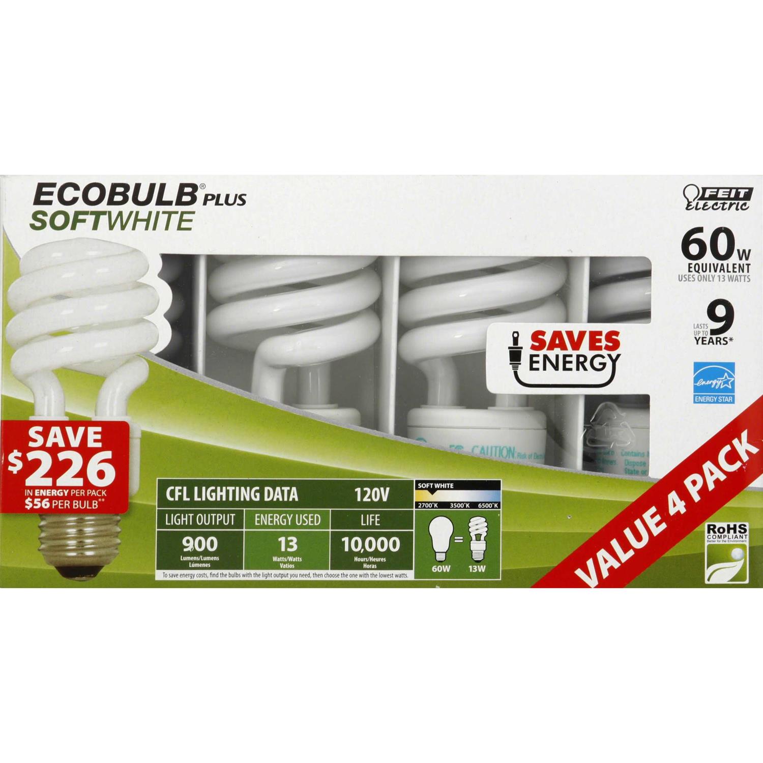 Feit 60-Watt CFL Light Bulb (4 Pack) 2700K – Soft White
