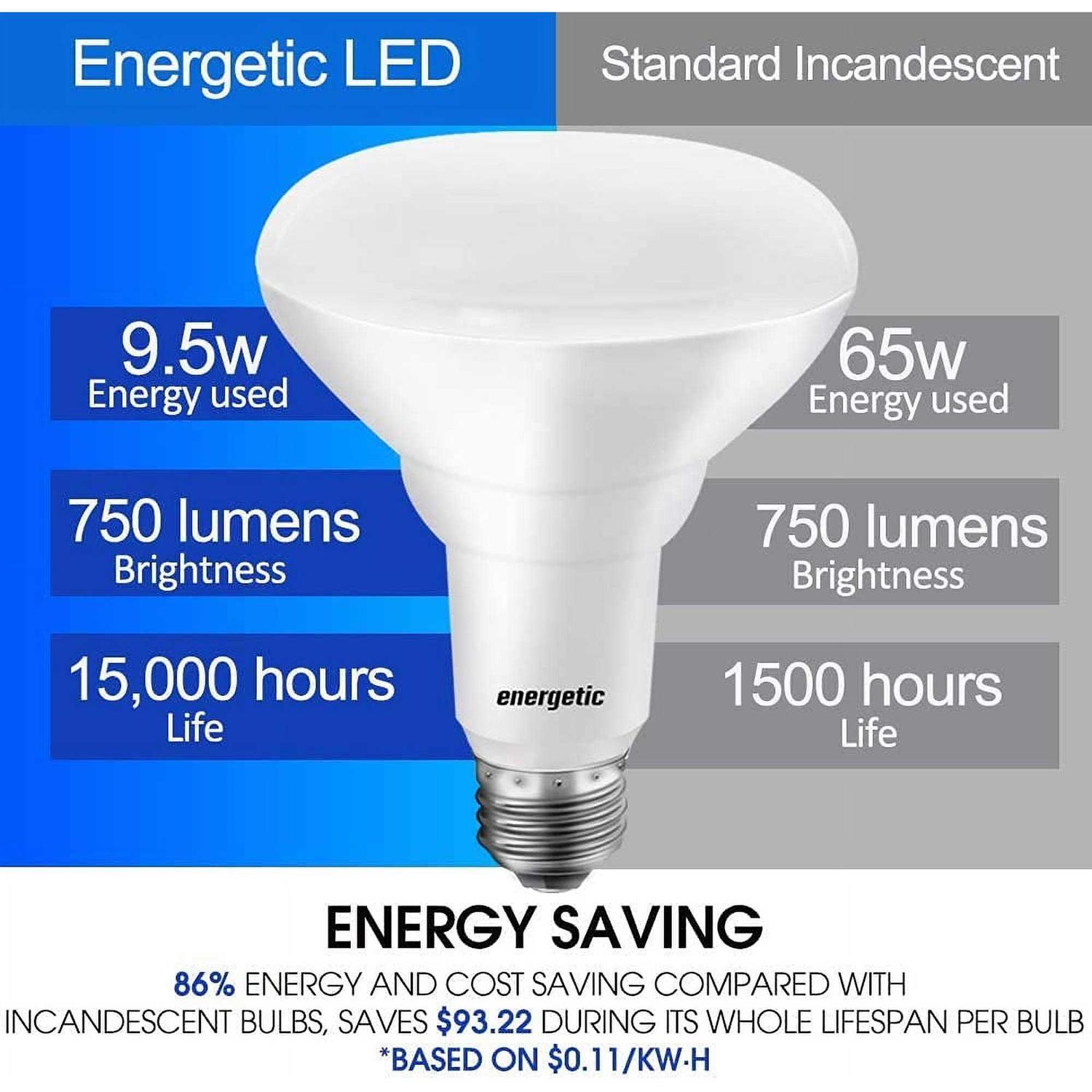 The Feit electric LED enhance product line features our highest quality energy efficient light. This soft white BR40 reflector LED light bulb produces a similar light output of 850-lumens but only uses 9.4-Watt of electricity, up to 85% less energy than a standard 65-Watt incandescent light bulb. This high performance bulb also has a high (CRI) of 90+ so colors appear more realistic and vibrant. Get instant on to full brightness with relatively cool running performance. These Feit electric BR40 bulbs have an average life of 25,000-hour/22.8-year are RoHS compliant and 100% mercury free. Choose a dependable energy star approved bulb for general purpose residential or commercial applications. Suitable for enclosed fixtures or outdoor use.