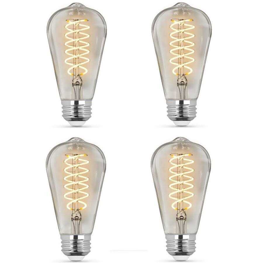 Create antique classic light setup with Feit Electric Edison vintage LED light bulbs. These 60-Watt equivalent ST19 dimmable Edison vintage LED bulbs combine the timeless beauty of classic style with the durability, reliability, and energy savings of modern LED technology. The decorative energy-efficient vintage LED light bulb is designed with an intricate LED spiral filament and has a 500-Lumen output. It emits warm 2700K soft white light through traditional looking ST19 clear glass housing which creates a soft, charming glow that draws people in. Place them above a kitchen dining table, hang above a bar, give a bedroom a cozy vibe, let your guests enjoy a welcoming living room, or use them any place where you need to create a serene atmosphere. This LED vintage light bulb fits into light fixtures that are compatible with standard, medium E26 base. With full dimming capabilities, this spiral LED filament bulb allows you to dim up or down for customized vintage lighting you can enjoy across your spaces. Choose Feit Electric decorative LED Edison light bulbs for residential or commercial applications.