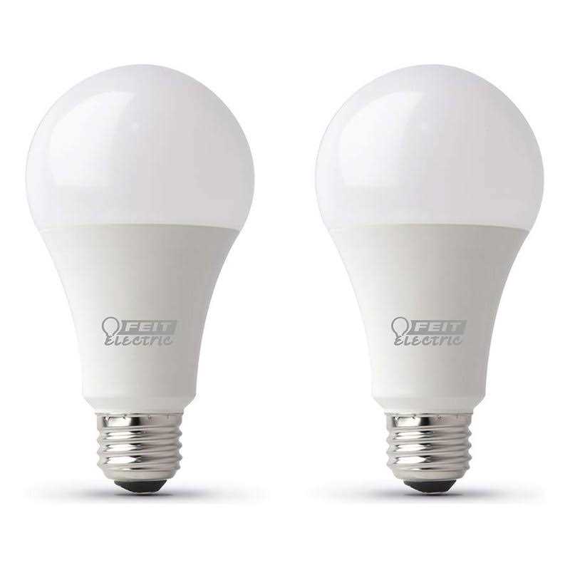 Enjoy all the benefits of advanced LED energy-saving technology with the Feit Electric OM100DM/930CA/2 two-pack of LED light bulbs. This dimmable 3000K warm white bulb produces 1600 Lumens using only 17.5W of electricity – saving up to 83% in energy costs over a 100W equivalent incandescent. It is omni directional for all round light distribution. Get instant on to full brightness with relatively cool running performance. These A19 bulbs have an average life of 25000 Hrs/22.8 years are RoHS compliant, Title 24 Compliant and 100% mercury free. Choose a dependable Energy Star approved bulb for general purpose residential or commercial applications.