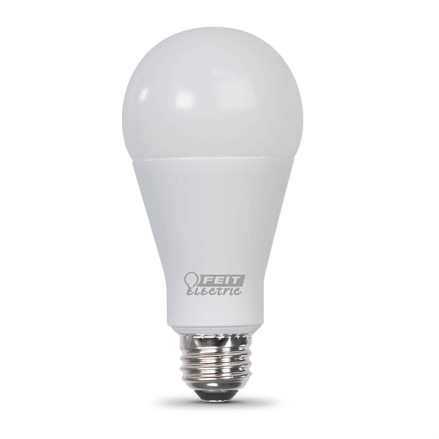 Enjoy all the benefits of advanced LED energy-saving technology with the Feit Electric A23 300-Watt high-Lumen non-dimmable LED light bulb. This 5000K Daylight bulb produces a super-bright output of 4060 Lumens while using only 33-Watt of energy – up to 89% less energy than an equivalent 300-Watt incandescent light bulb. This LED light bulb is omni directional for all round light distribution. Get instant on to full brightness with relatively cool running performance. Feit Electric high-Lumen A23 bulbs have an average life of 25,000 hours/23 years, are RoHS compliant and 100% mercury free. Choose a dependable Feit Electric high-Lumen bulb for your residential or commercial applications.