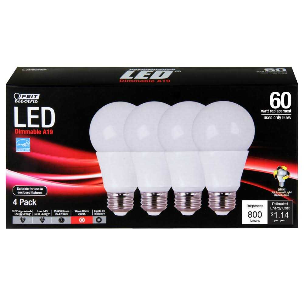 The Feit Electric LED Enhance product line features our highest quality energy efficient light. This warm white omni directional A19 LED light bulb produces a similar light output but uses less energy than a standard 60-watt incandescent light bulb. This high performance bulb also has a high (CRI) of 90+ so colors appear more realistic and vibrant. Get instant on to full brightness with relatively cool running performance. These Feit Electric A19 bulbs have an average life of 25 000 hours / 22.8 years are RoHS compliant and 100% mercury free. Choose a dependable Energy Star approved bulb for general purpose residential or commercial applications. Suitable for enclosed fixtures and outdoor use.