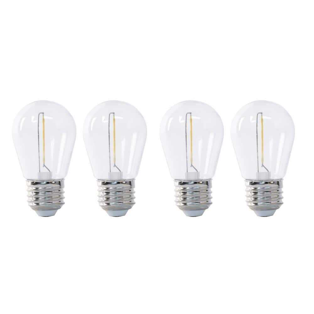 Combine classic style with modern reliability and energy savings with Feit Electric S14/822/FILED/4 Exposed Filament Light Bulbs. Each LED Bulb is made with an exposed filament and wrapped in a durable clear glass housing to deliver a new twist on a classic look and feel. Upgrade your old string lights to these S14 bulbs for a 2200K Warm White glow and 70-lumen output. These bulbs use 1 watt per bulb, using up to 90percent less energy than traditional 11-watt incandescent bulbs. They have an estimated annual energy cost of only $0.12/year per bulb (based on 3 hours per day of use). Get up to 15,000 hours/13.7 years of life. Get instant on to full brightness with relatively cool running performance. Choose Feit Electric S14 spiral filament bulbs to add a touch of class to your porch, patio, or outdoor space for years to come.