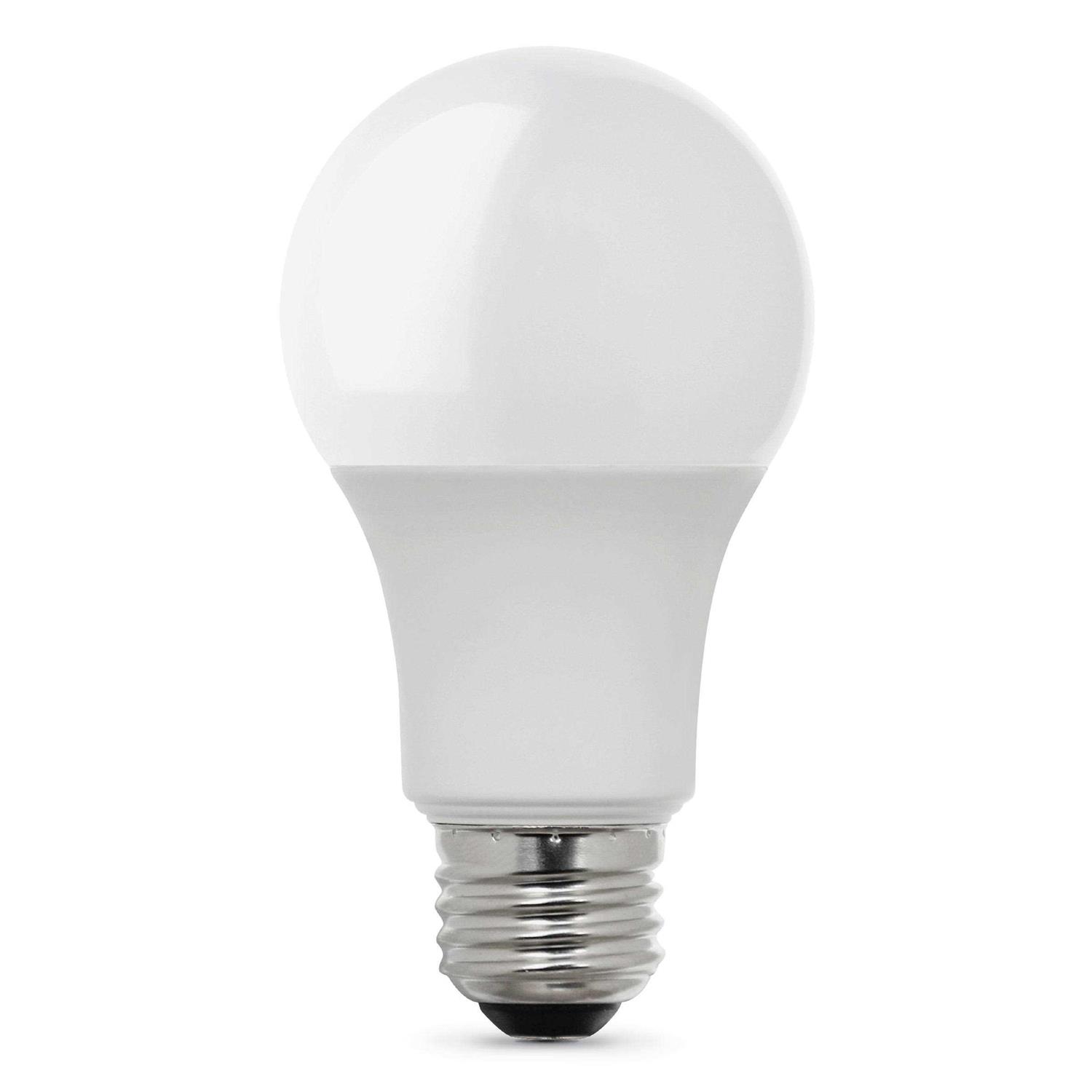 The Feit Electric A19 LED Bulb is a great choice for any general purpose residential or commercial applications. The 5000K daylight light is non-dimmable and will replace a 60-watt equivalent incandescent bulb. It produces a similar light output (800 lumens), uses 10 watts of electricity and up to 84percent less energy than a standard incandescent light bulb. Get instant on to full brightness with relatively cool running performance. Feit Electric A19 bulbs have an average life of 11,000 hours / 10 years, are RoHS compliant and 100percent mercury free. Color: One Color.