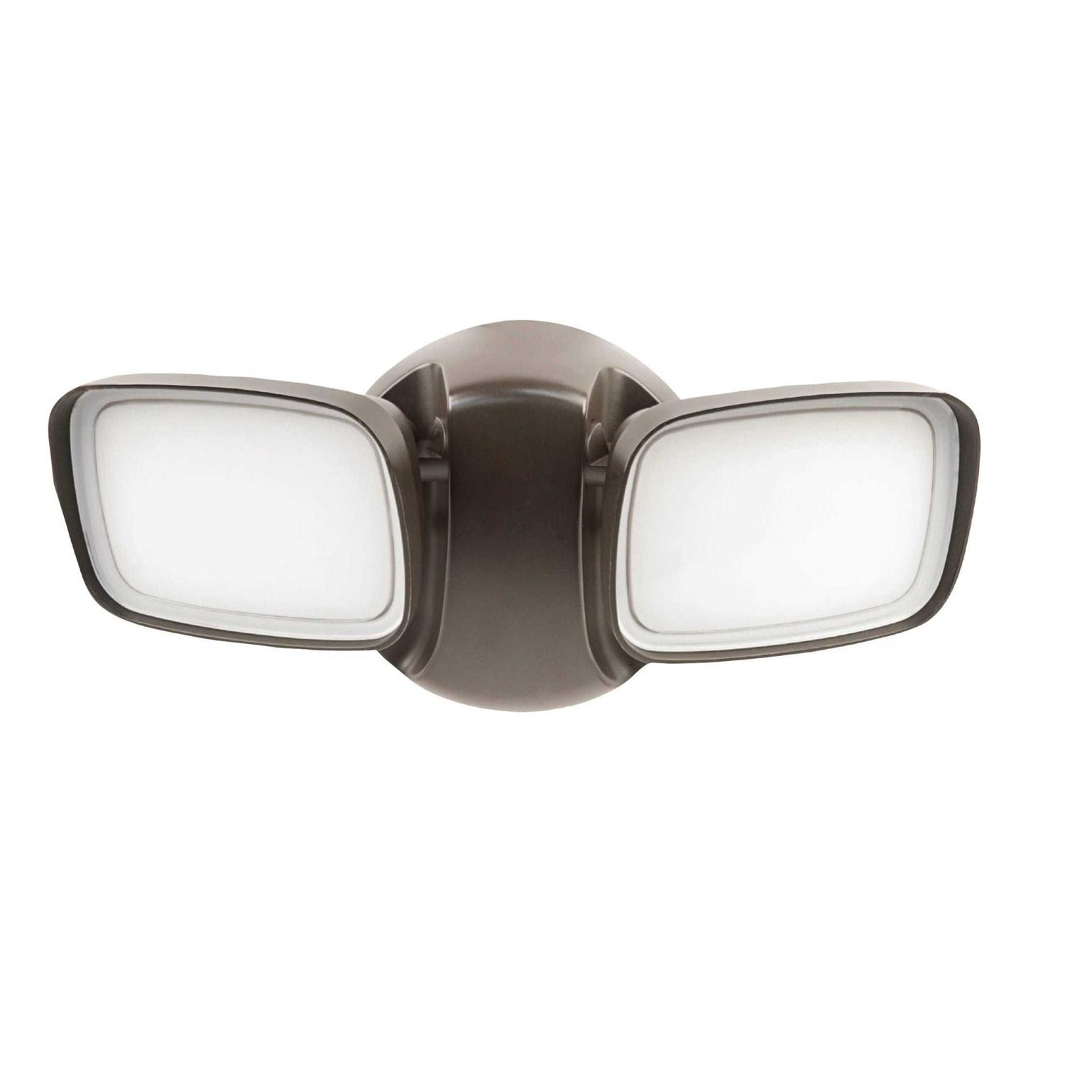 The Feit Electric S9DFL/850/BZ/V1 Dual Head Flood Light provides added function to any exterior residential or commercial area. This 5000K Daylight LED is wall or eave mountable. Its tool-free, self-locking adjustable heads rotate for lighting right where you need it. Sturdy construction along with a UV-protected shatter-resistant lens also provides enhanced durability to ensure long life for the fixture. LED technology offers evenly distributed 2000 lumens of light with average life of 50,000 hours/17 years.