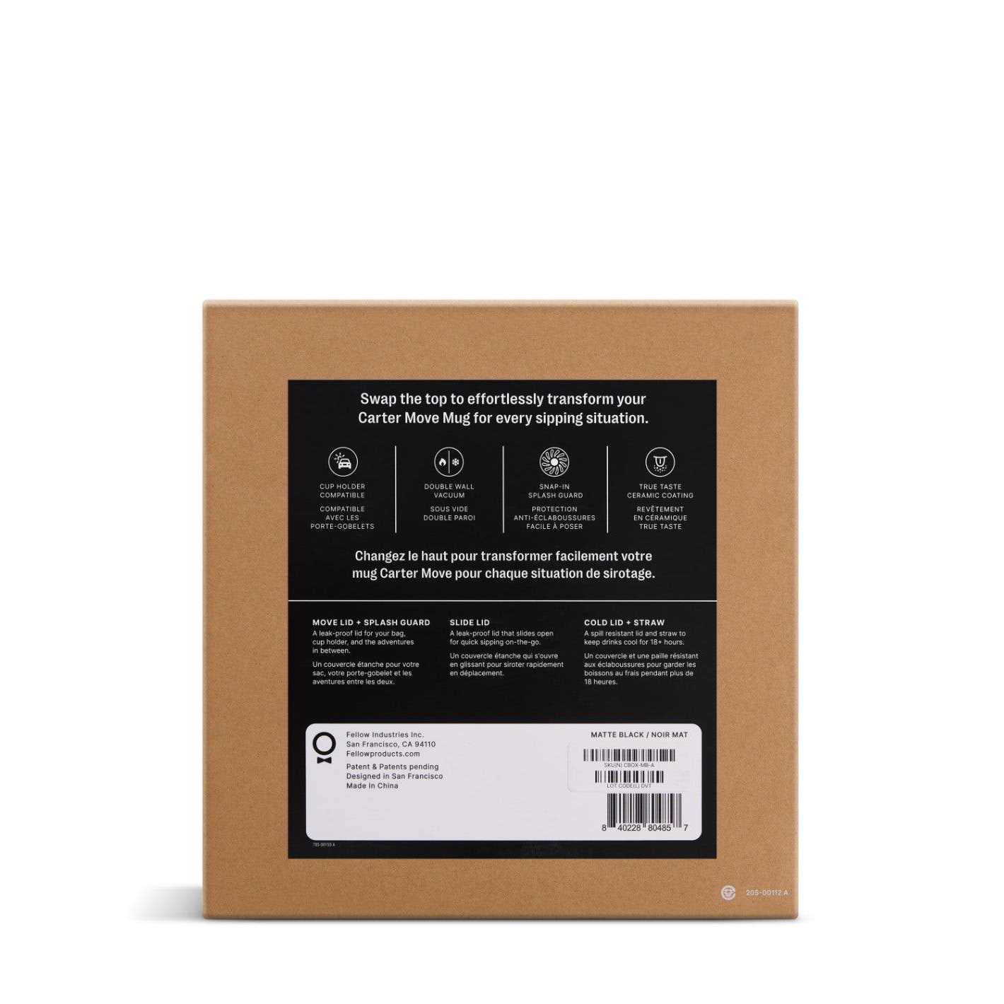 Pick up the award-winning, 16oz (473ml) Fellow Carter with three lid variations, all in one beautiful (and highly giftable) box. Swap the top to effortlessly transform Carter for every sipping situation.